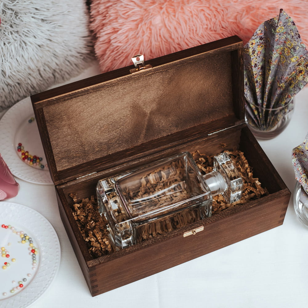 Grawerowana karafka na pewno spodoba się obdarowanej osobie, a nalany z niej alkohol będzie smakować jeszcze lepiej. Skrzynka na karafkę wykonana jest z wysokiej jakości drewna i jest nie tylko jej doskonałym opakowaniem, ale także prezentem dla magistra sama w sobie. To naprawdę luksusowy produkt, który jest doskonałym prezentem z okazji obrony pracy magisterskiej.