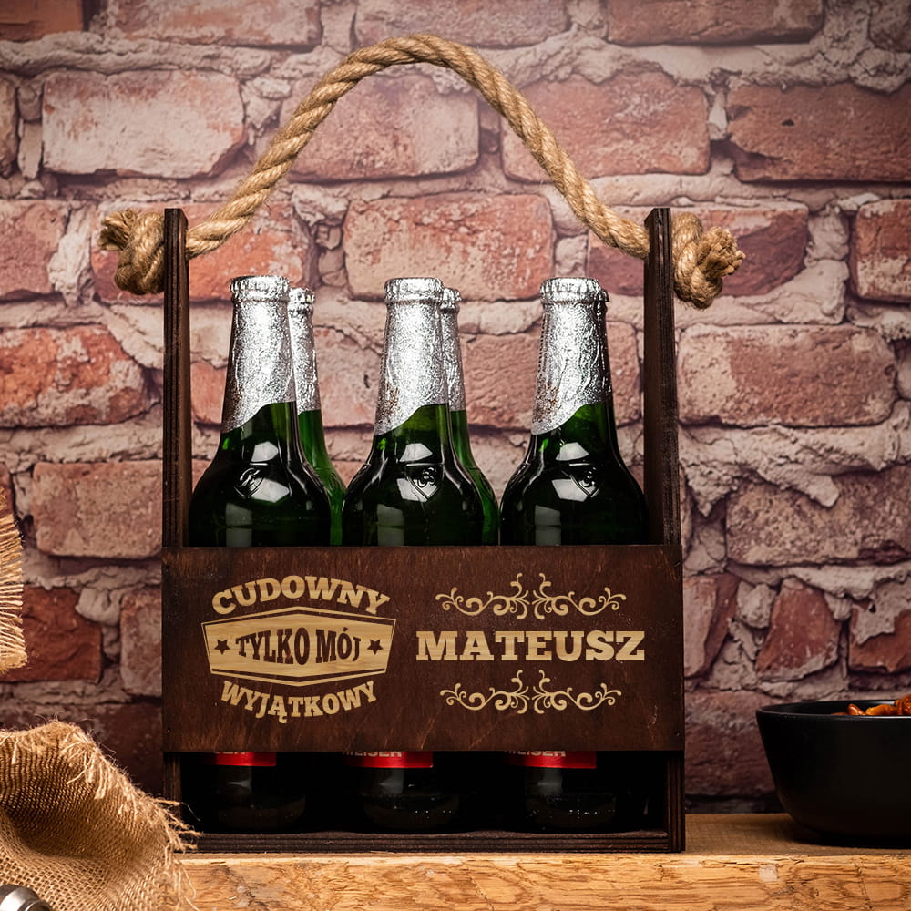 Szukasz oryginalnego prezentu na Walentynki? Wybierz nosidło na piwo z grawerem Cudowny, Tylko Mój, Wyjątkowy, które przyda się każdemu koneserowi piwa.