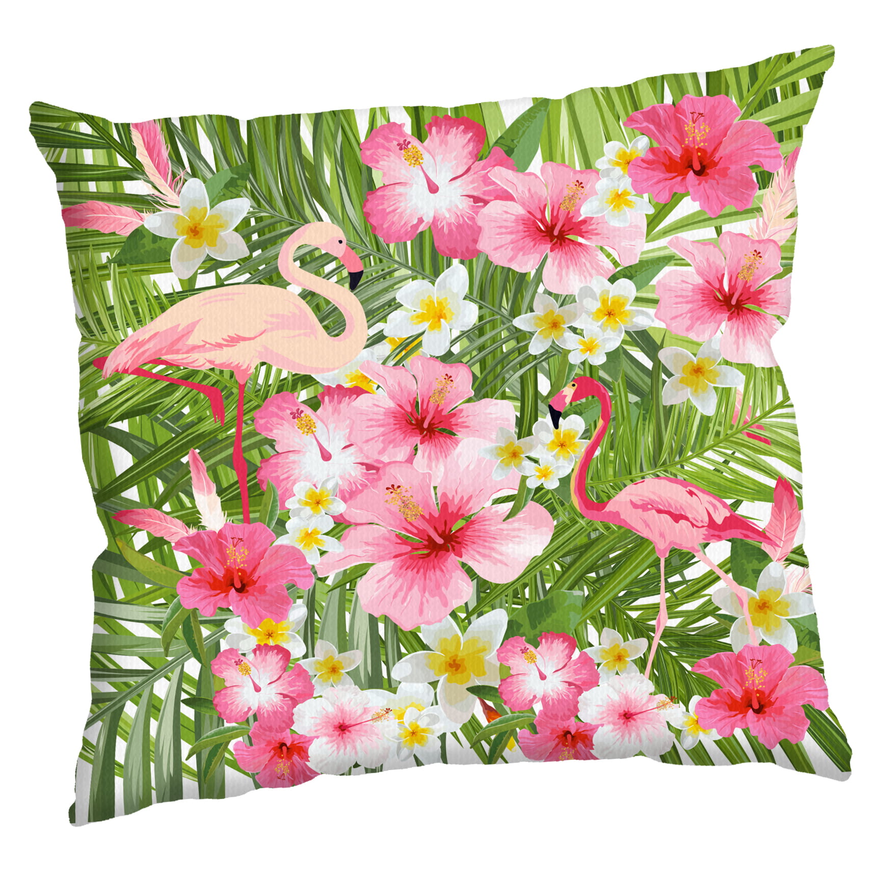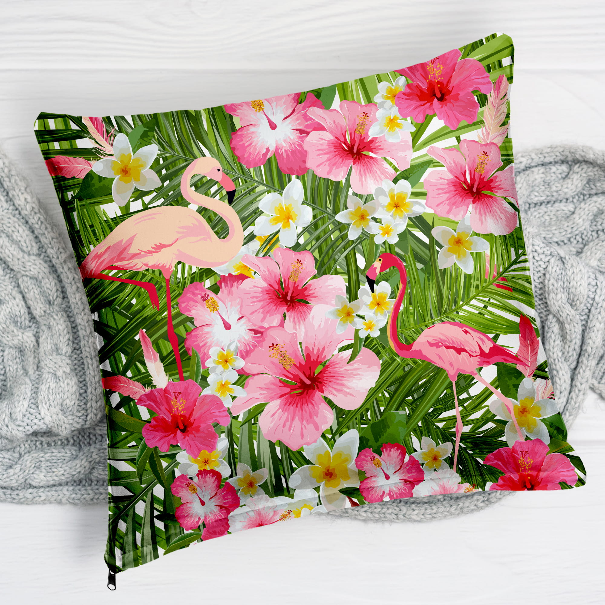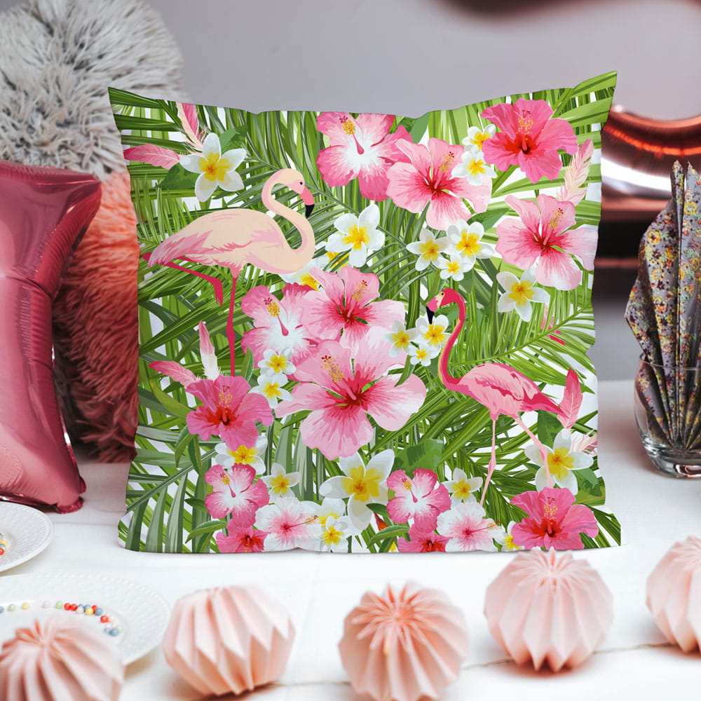 Poduszka Dekoracyjna we Flamingi i Liście - Poduszka Ozdobna z Nadrukiem