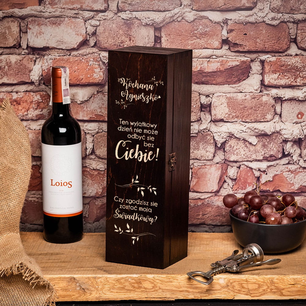 Skrzynka Na Wino z Grawerem dla Świadkowej - Prośba o Świadkowanie - Czy Zostaniesz Moją Świadkową? - Pojedyncza