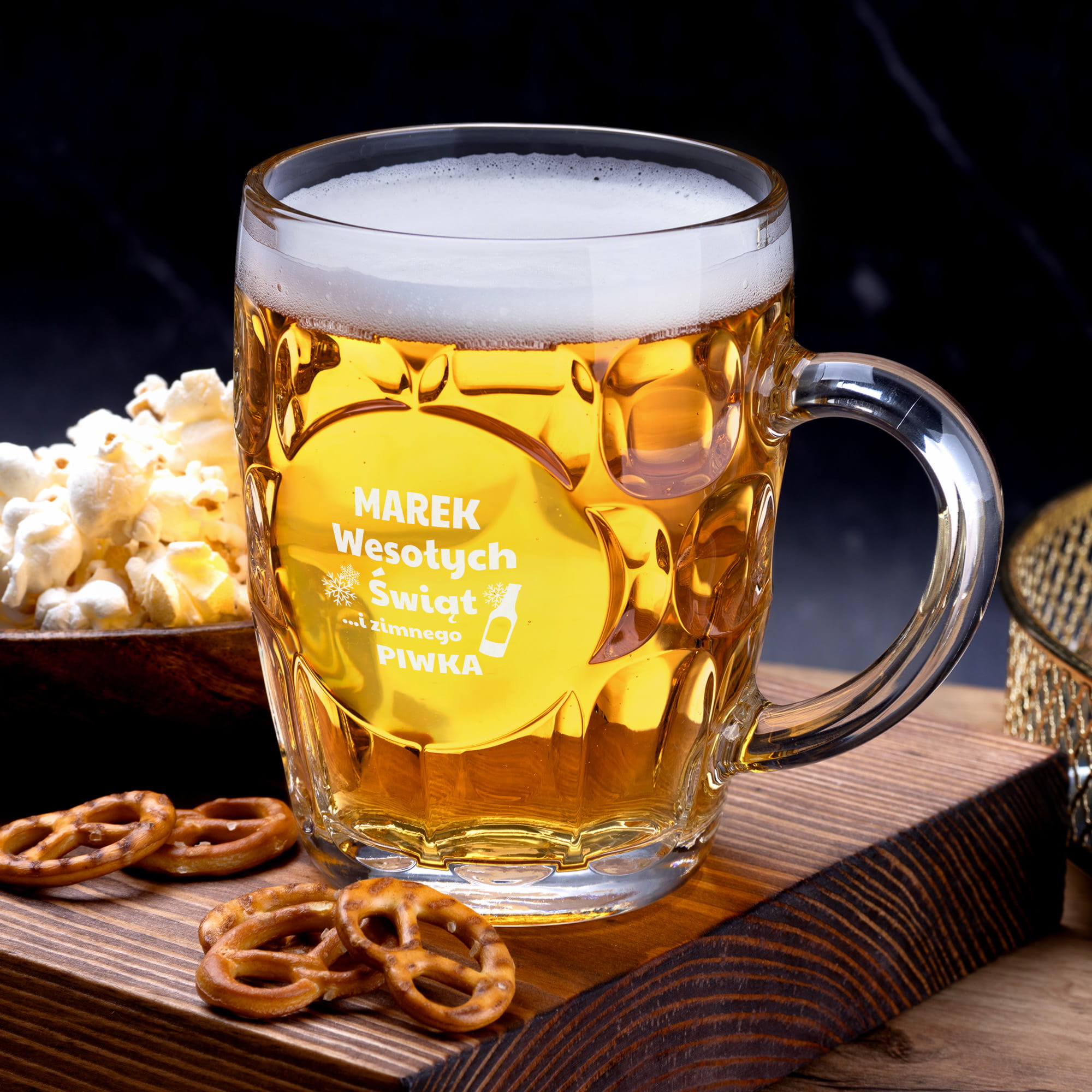 Kufel z Grawerem Do Piwa na Boże Narodzenie - Prezent z Imieniem na Święta - Wesołych Świąt i Zimnego Piwka