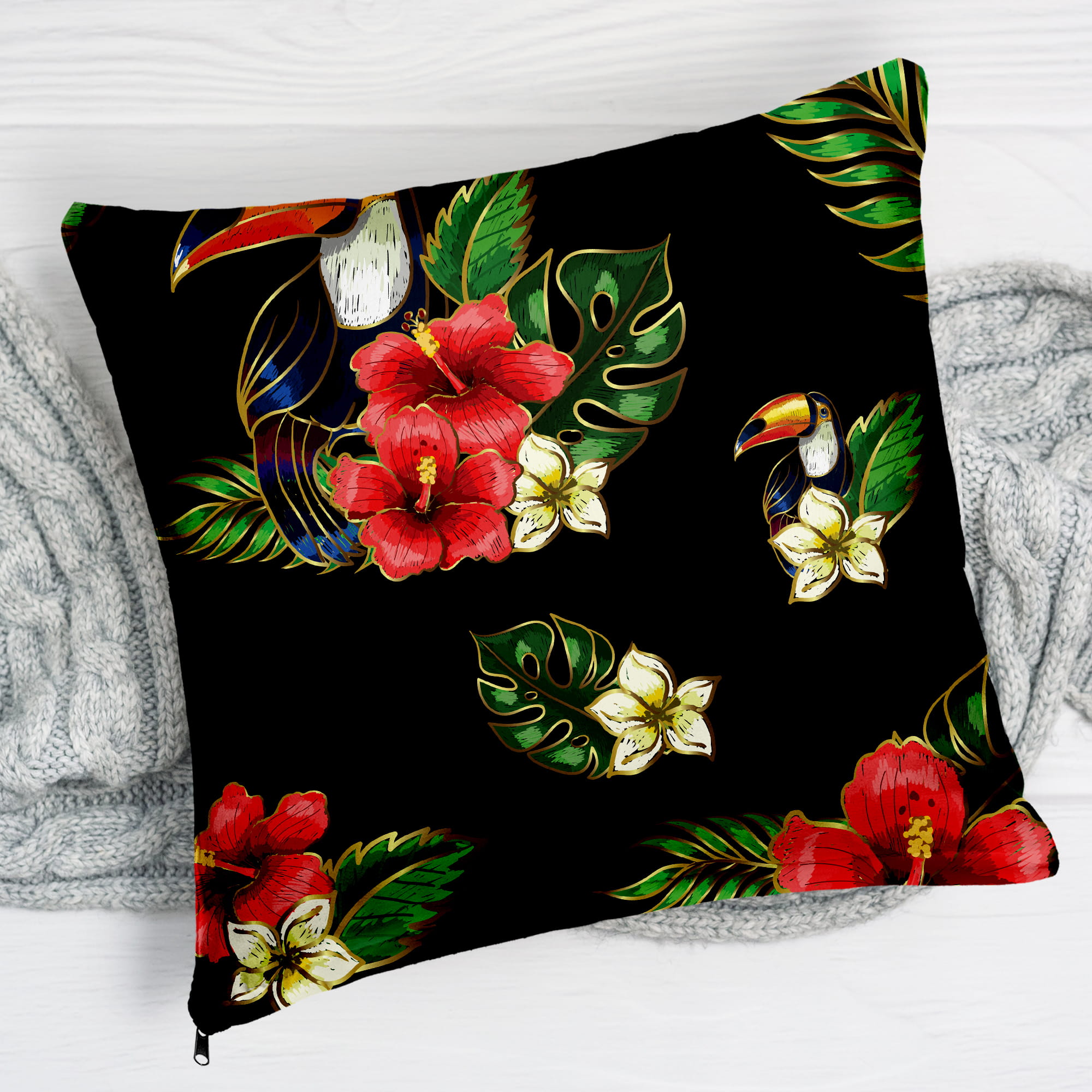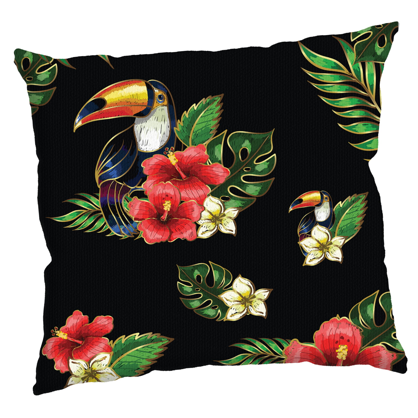 Poduszka Dekoracyjna z Tukanem, Monstera Czarna - Poduszka Ozdobna z Nadrukiem