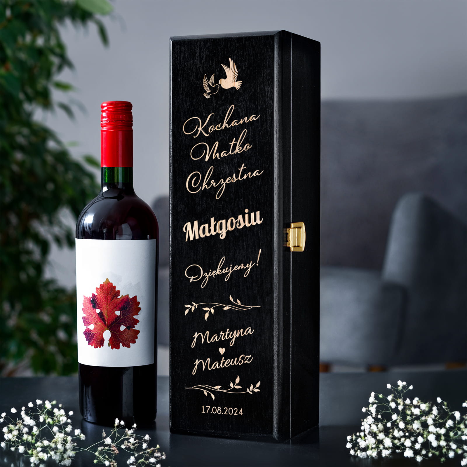 ELEGANCKA SKRZYNKA NA WINO Z GRAWEREM