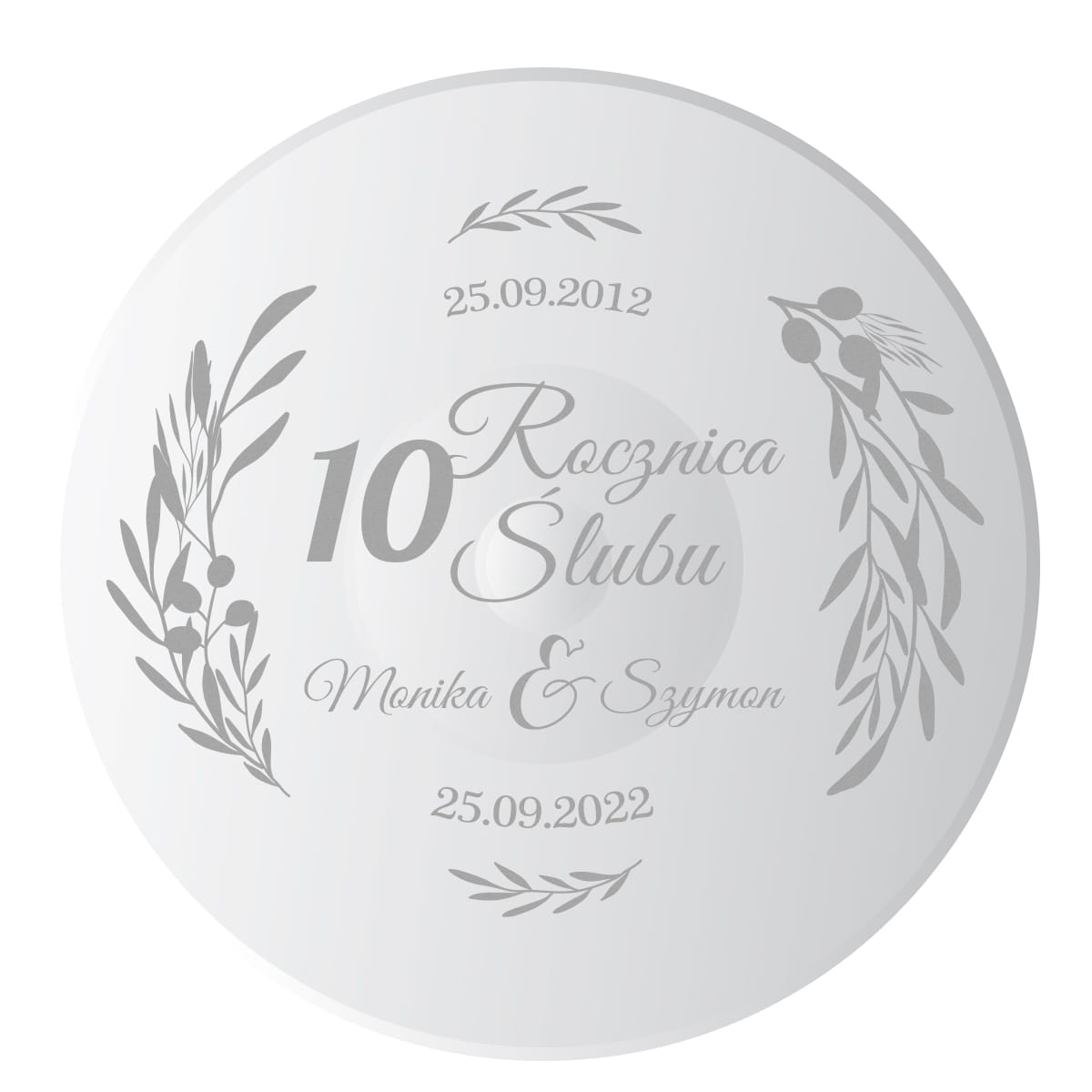 Szklana Patera na Ciasto Tort z Grawerem - Prezent na Rocznicę Ślubu - Liście