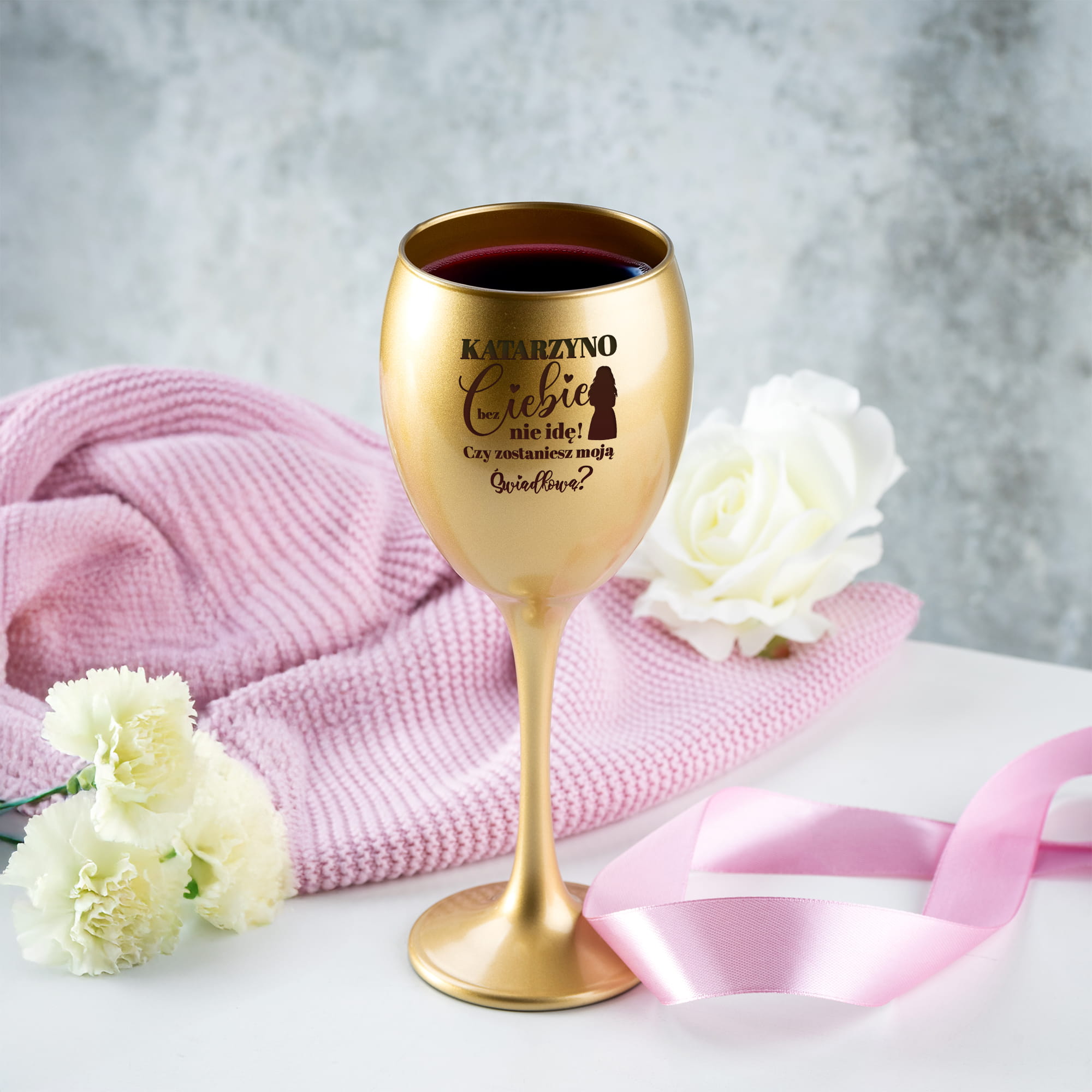 ✨ Szukasz prezentu dla świadkowej na ślub? Grawerowany złoty kieliszek na wino to wybór idealny. Dzięki temu upominkowi Twoja Świadkowa będzie mogła pozwolić sobie na chwilę relaksu w domowym zaciszu z ulubionym trunkiem w dłoni. Personalizacja na kieliszku sprawi, że Twój prezent będzie wyjątkowy, jedyny w swoim rodzaju i przyniesie wiele radości. Kieliszek do wina z grawerem w kolorze złotym – idealny do delektowania się ulubionym winem w domowym zaciszu, a personalizowany grawer na złotej powierzchni sprawia, że jest to idealny prezent na urodziny, rocznicę czy inne ważne wydarzenie.