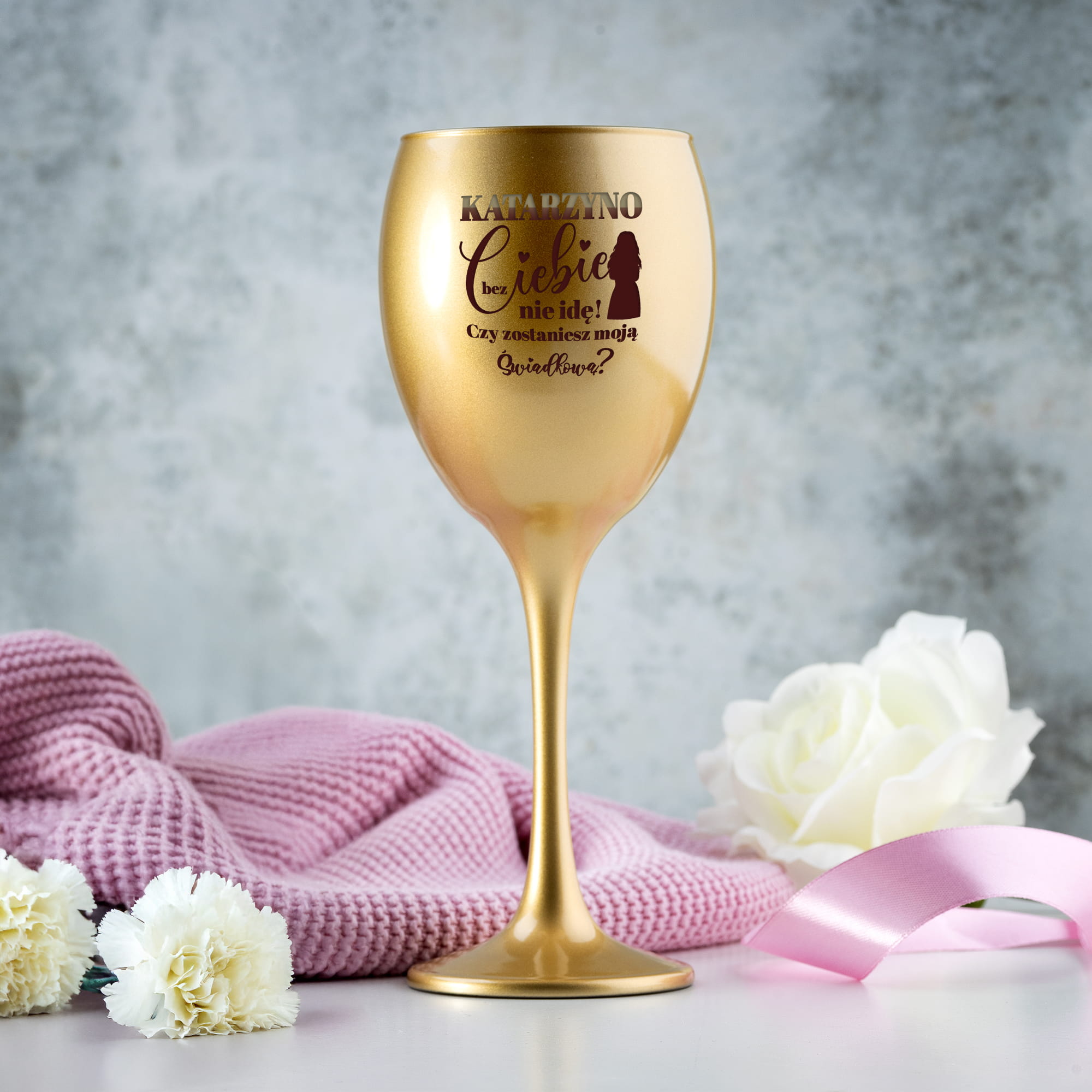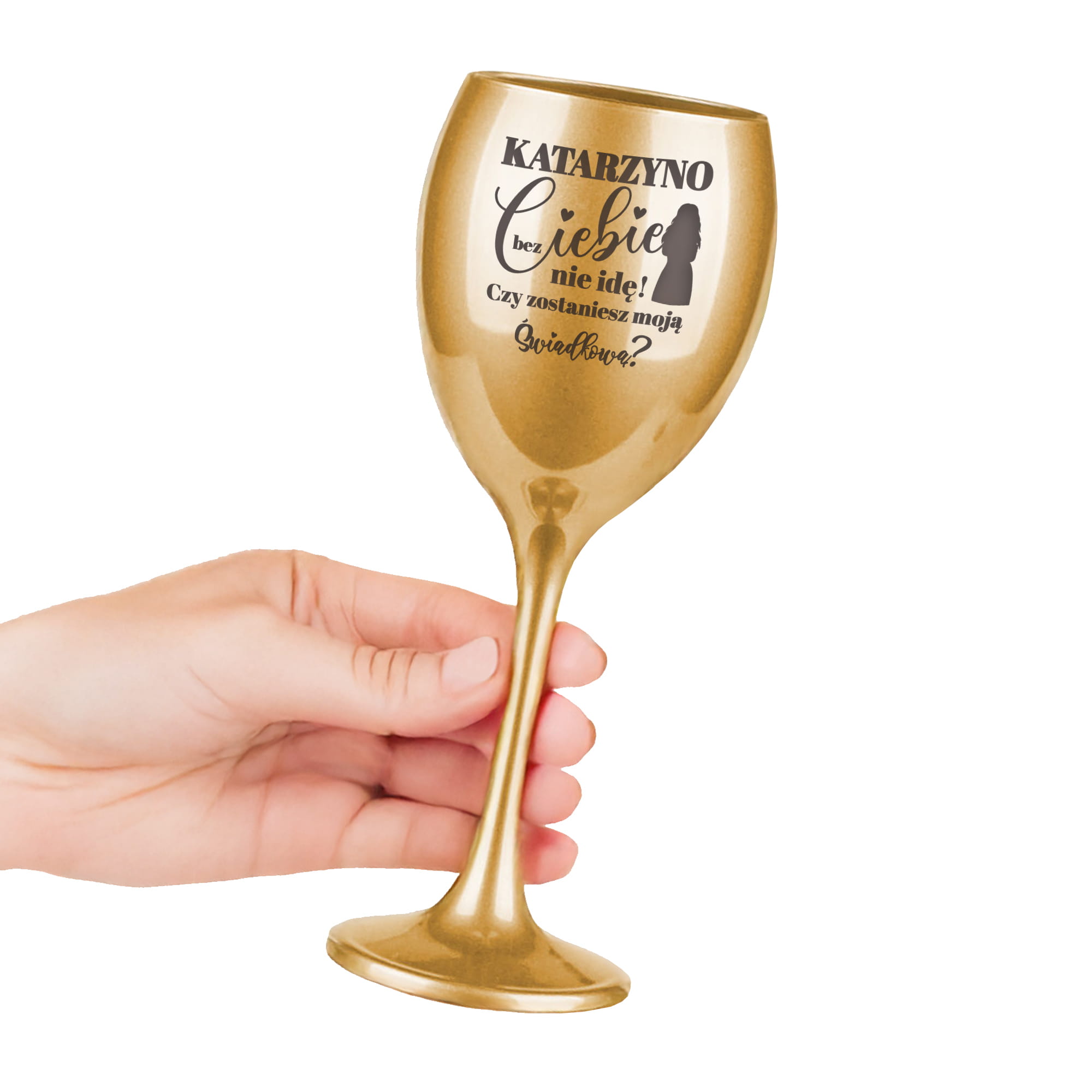 ZŁOTY KIELISZEK DO WINA Z GRAWEREM DLA ŚWIADKOWEJ - PREZENT DLA ŚWIADKOWEJ - PODZIĘKOWANIE DLA ŚWIADKOWEJ