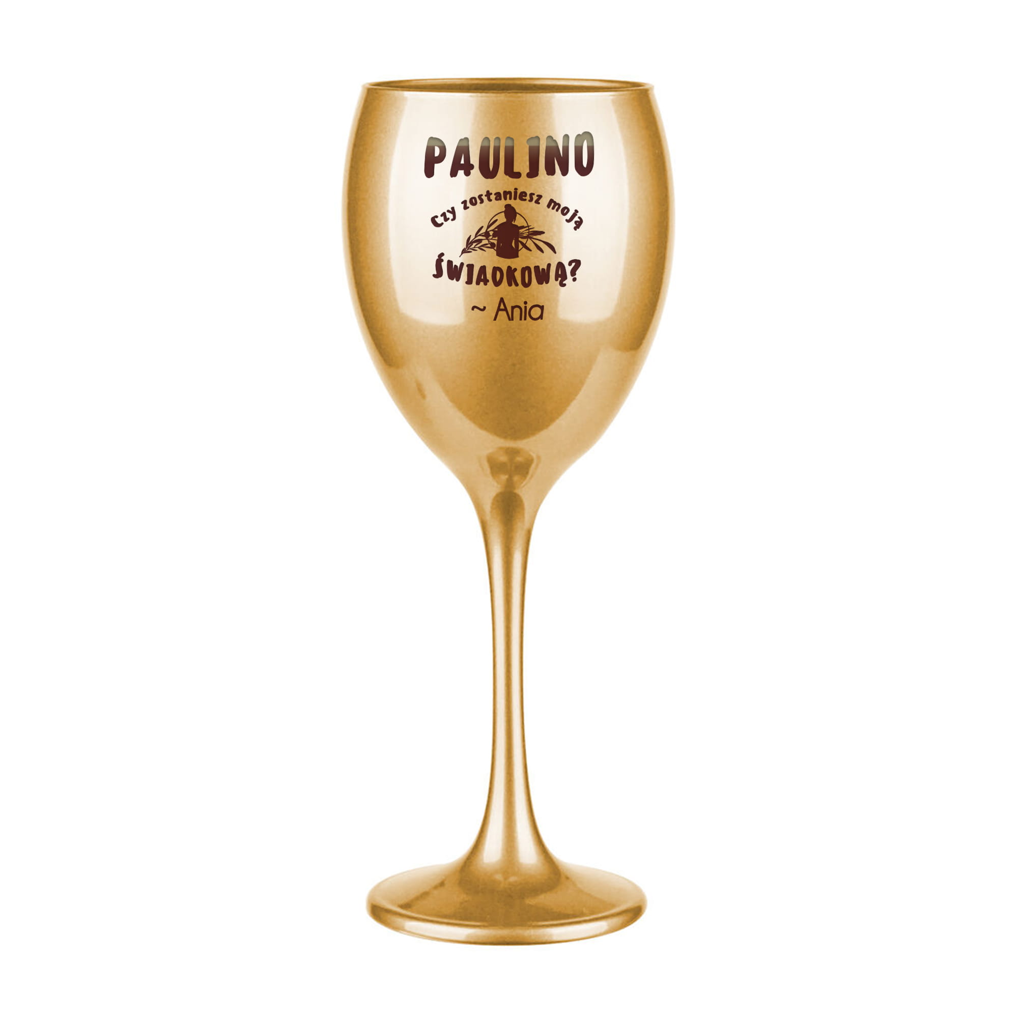 ZŁOTY KIELISZEK DO WINA Z GRAWEREM DLA ŚWIADKOWEJ - PREZENT DLA ŚWIADKOWEJ - PODZIĘKOWANIE DLA ŚWIADKOWEJ