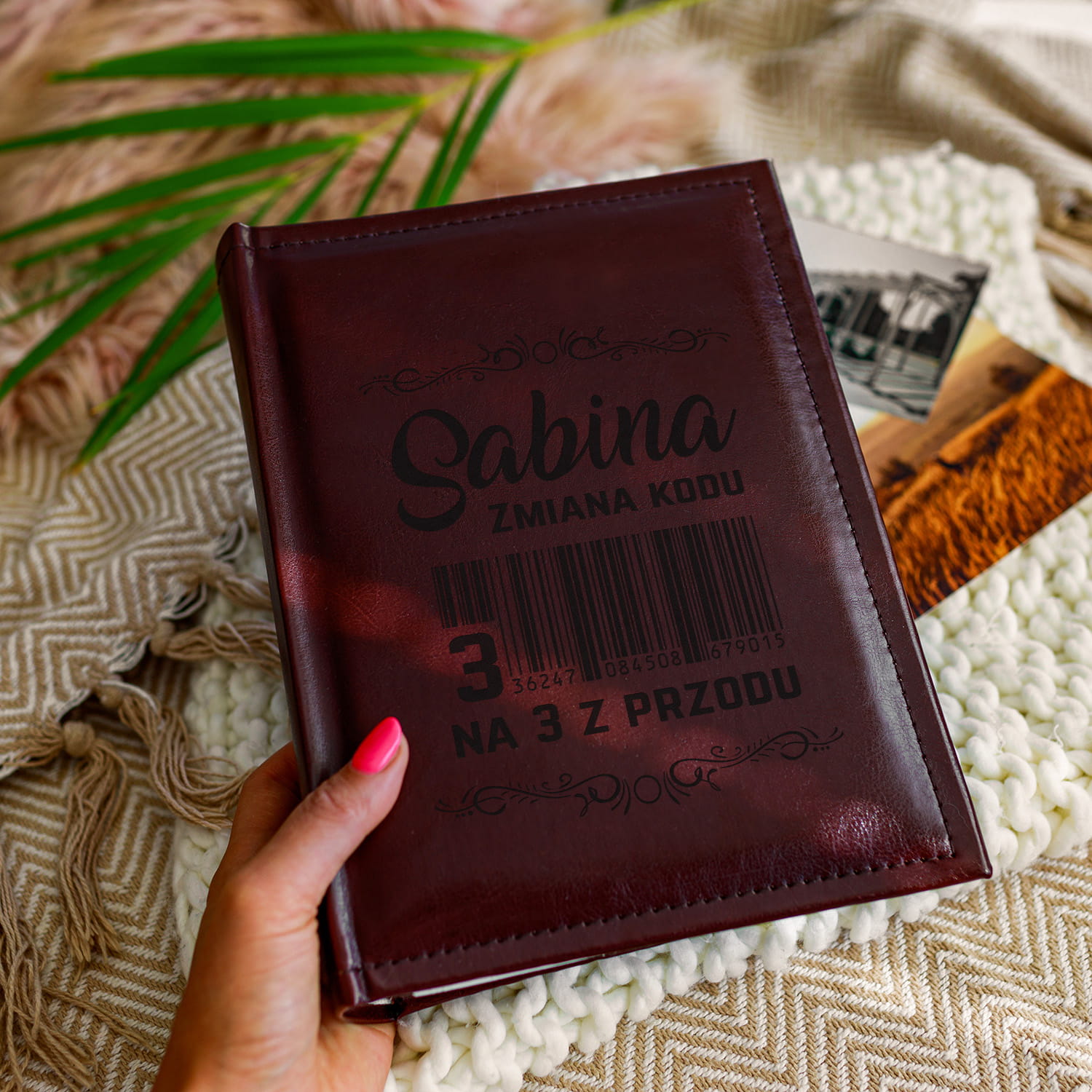 Jeżeli szukasz pięknego i praktycznego prezentu na urodziny, wybierz grawerowany album na zdjęcia z napisem zmiana kodu i z imieniem.