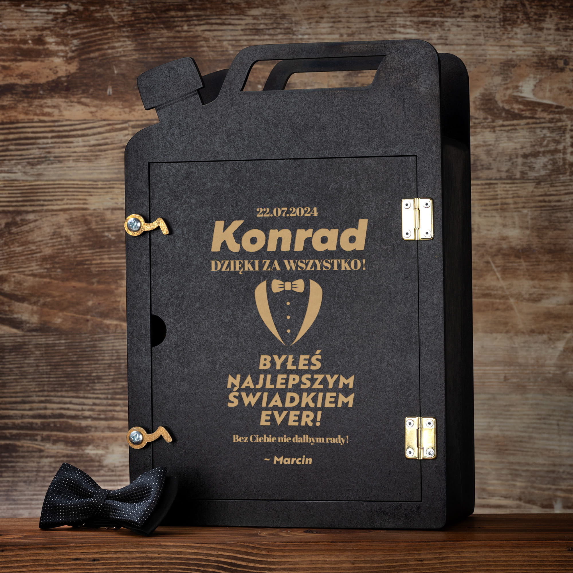 ORYGINALNA SKRZYNKA NA ALKOHOL Z GRAWEREM DLA ŚWIADKA