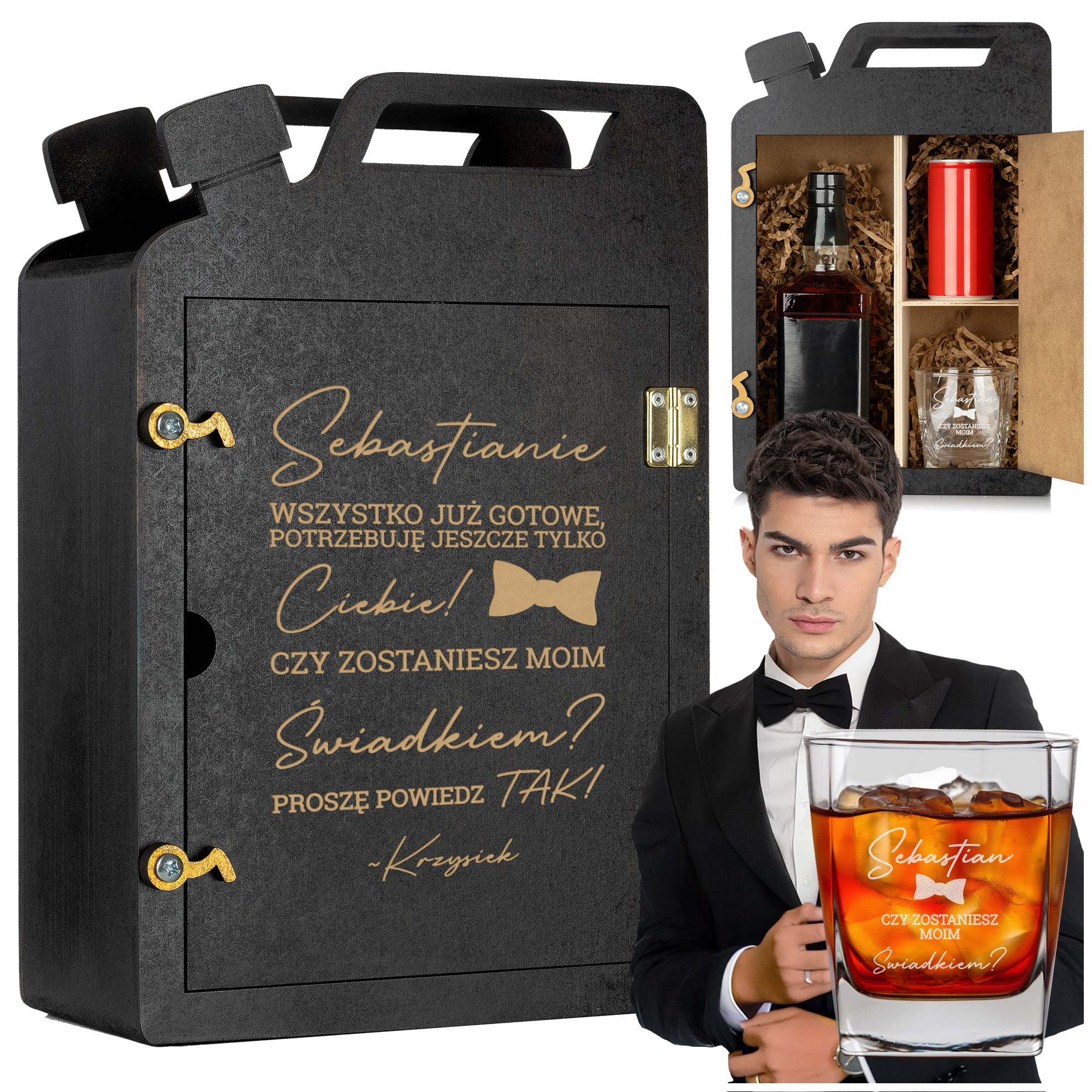 Barek Kanister na Alkohol + Szklanka z Grawerem dla Świadka - Prezent dla Świadka - Prośba o Świadkowanie