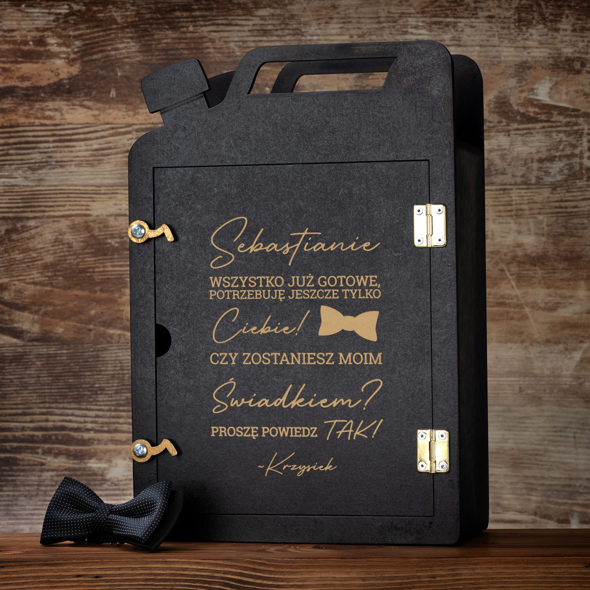 ORYGINALNA SKRZYNKA NA ALKOHOL Z GRAWEREM DLA ŚWIADKA