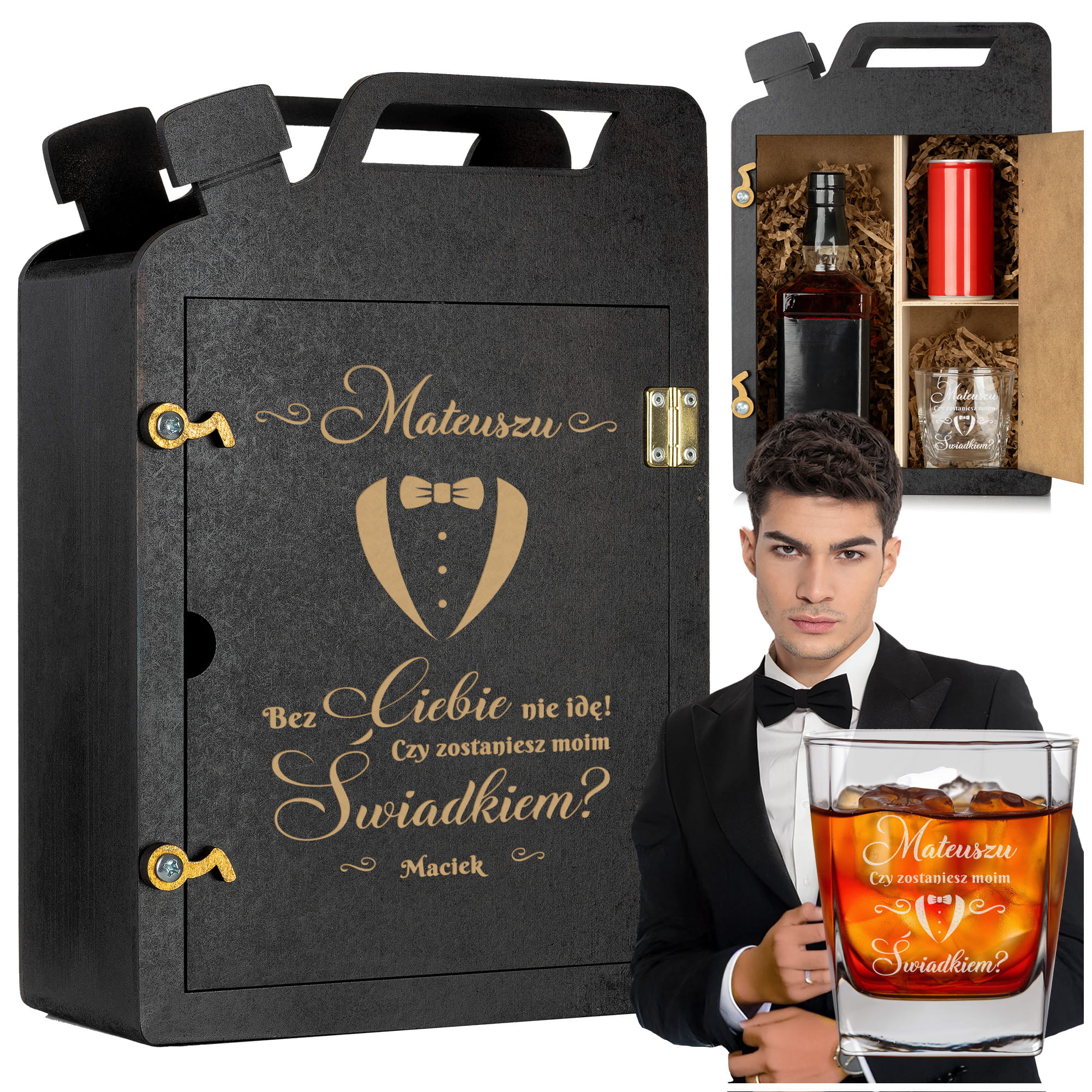 Barek Kanister na Alkohol + Szklanka z Grawerem dla Świadka - Prezent dla Świadka - Prośba o Świadkowanie