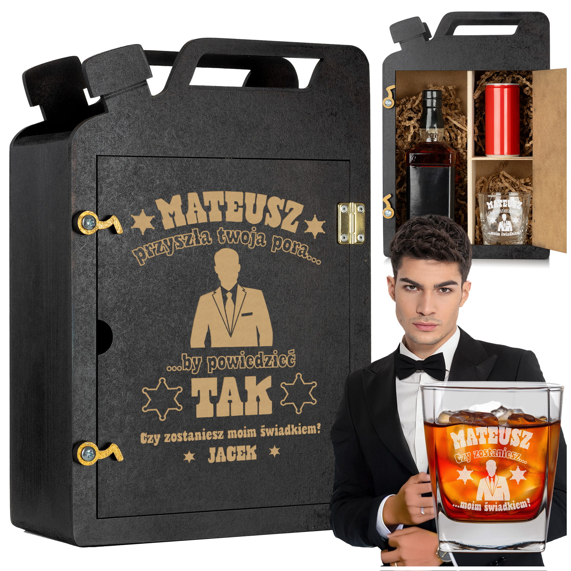 Barek Kanister na Alkohol + Szklanka z Grawerem dla Świadka - Prezent dla Świadka - Prośba o Świadkowanie