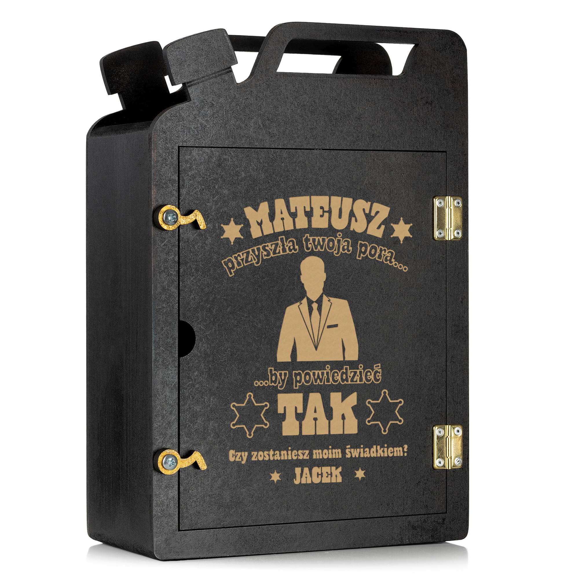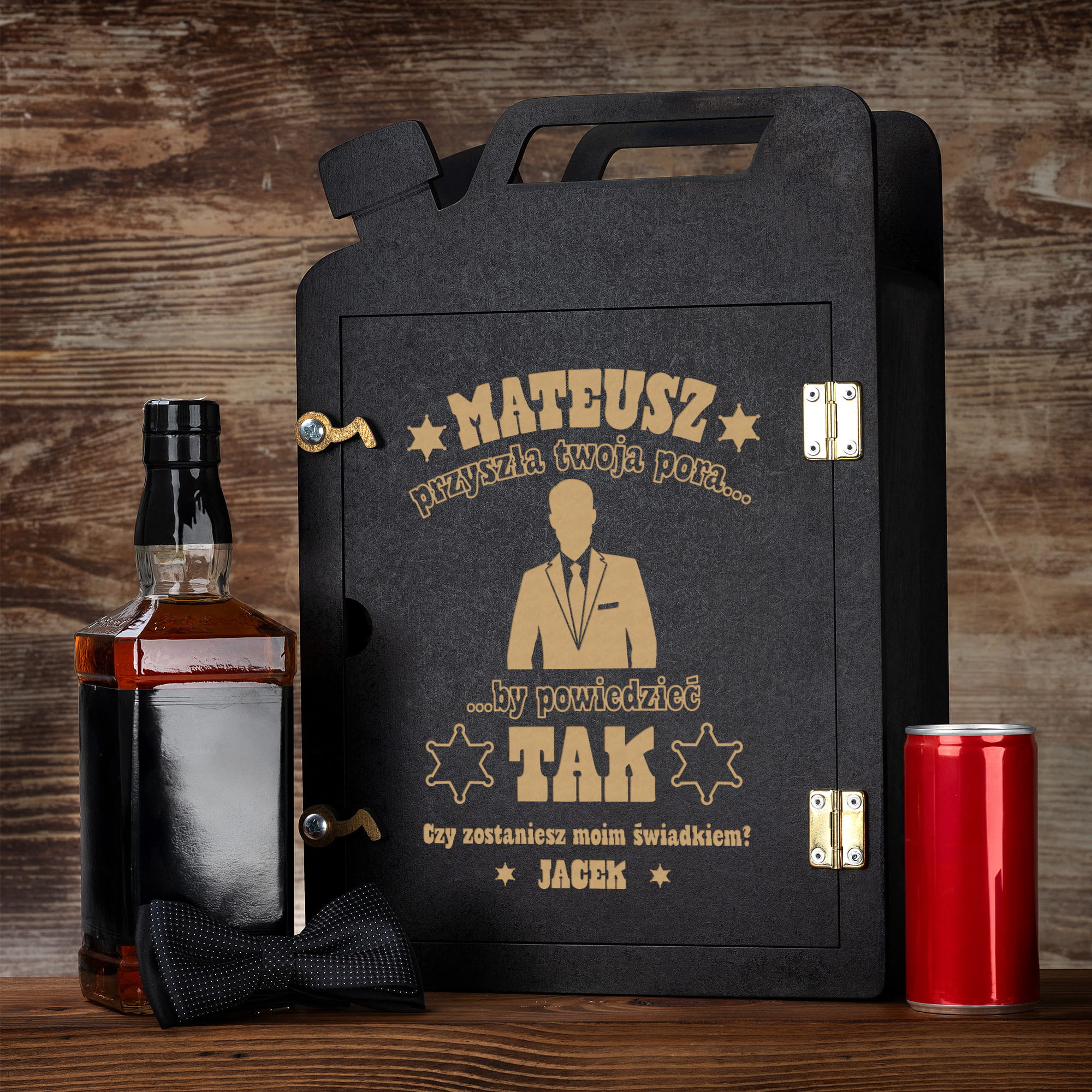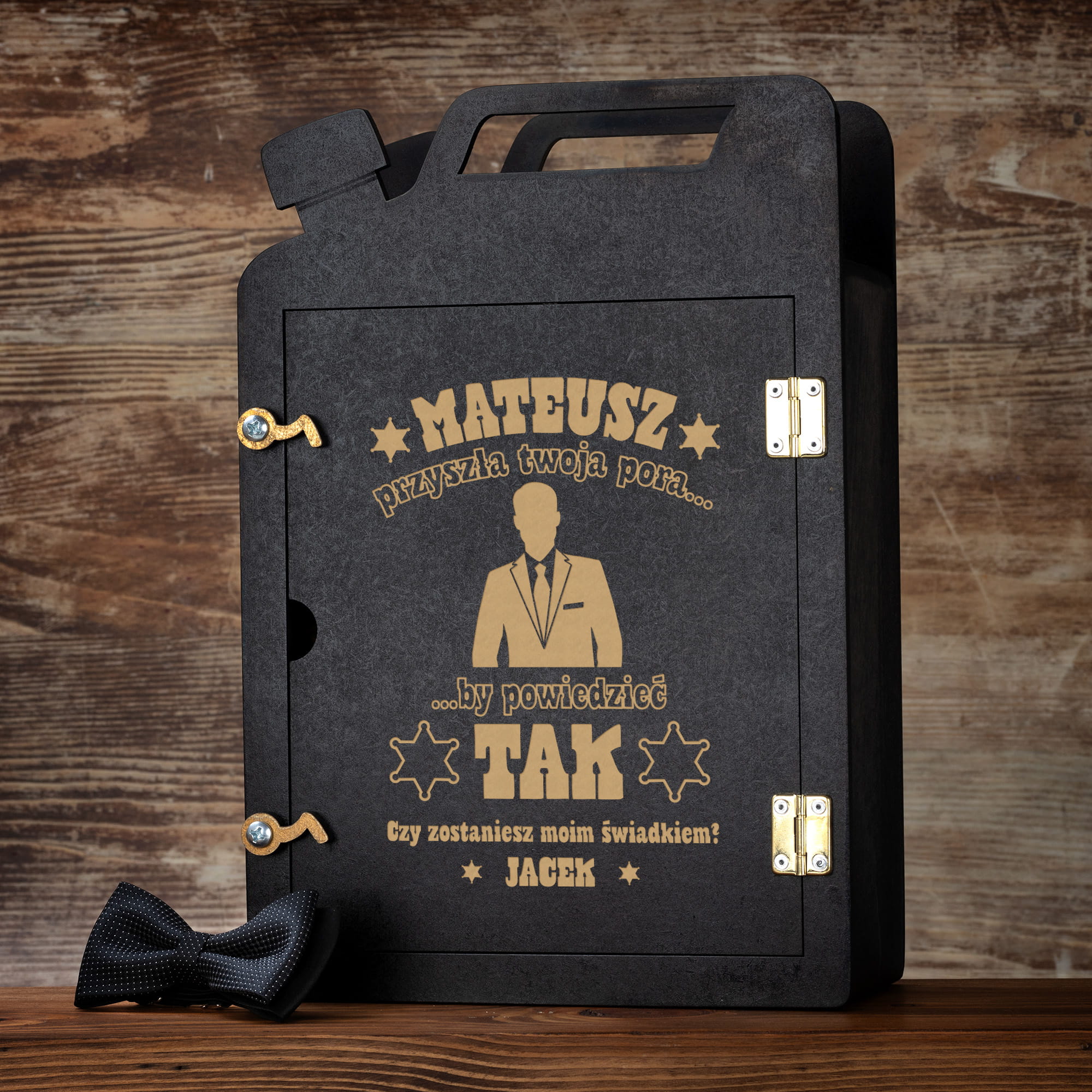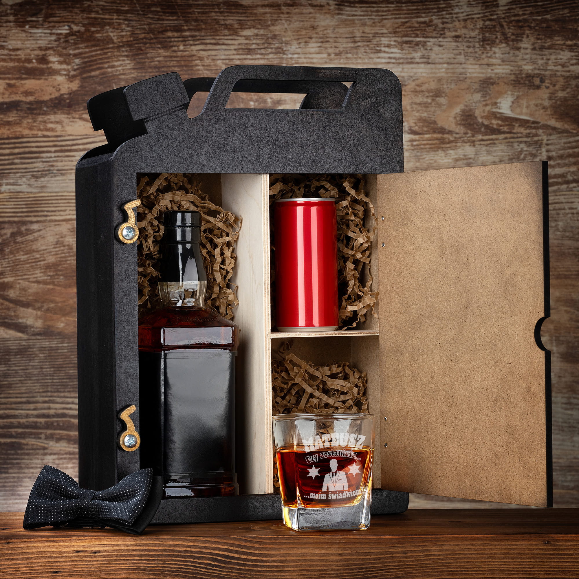ORYGINALNA SKRZYNKA NA ALKOHOL Z GRAWEREM DLA ŚWIADKA