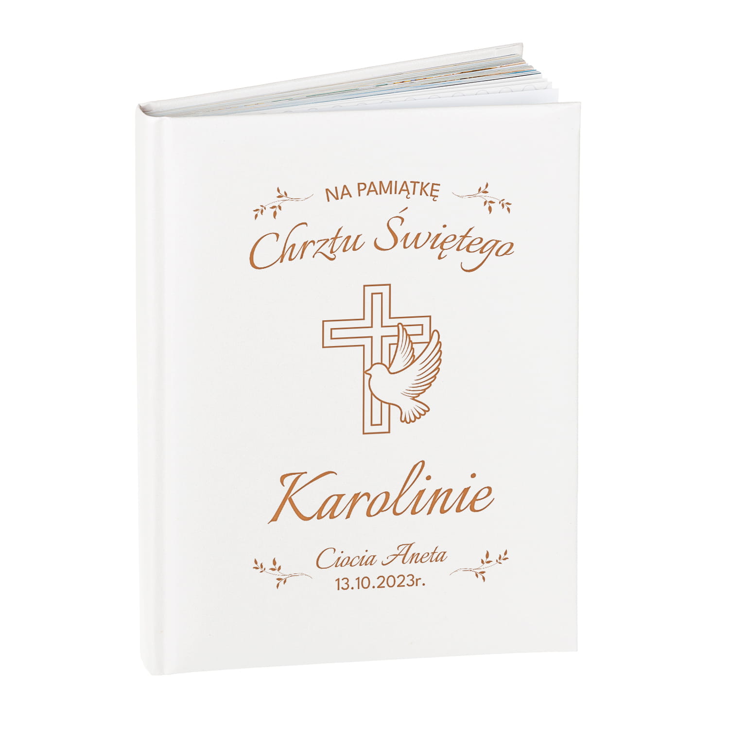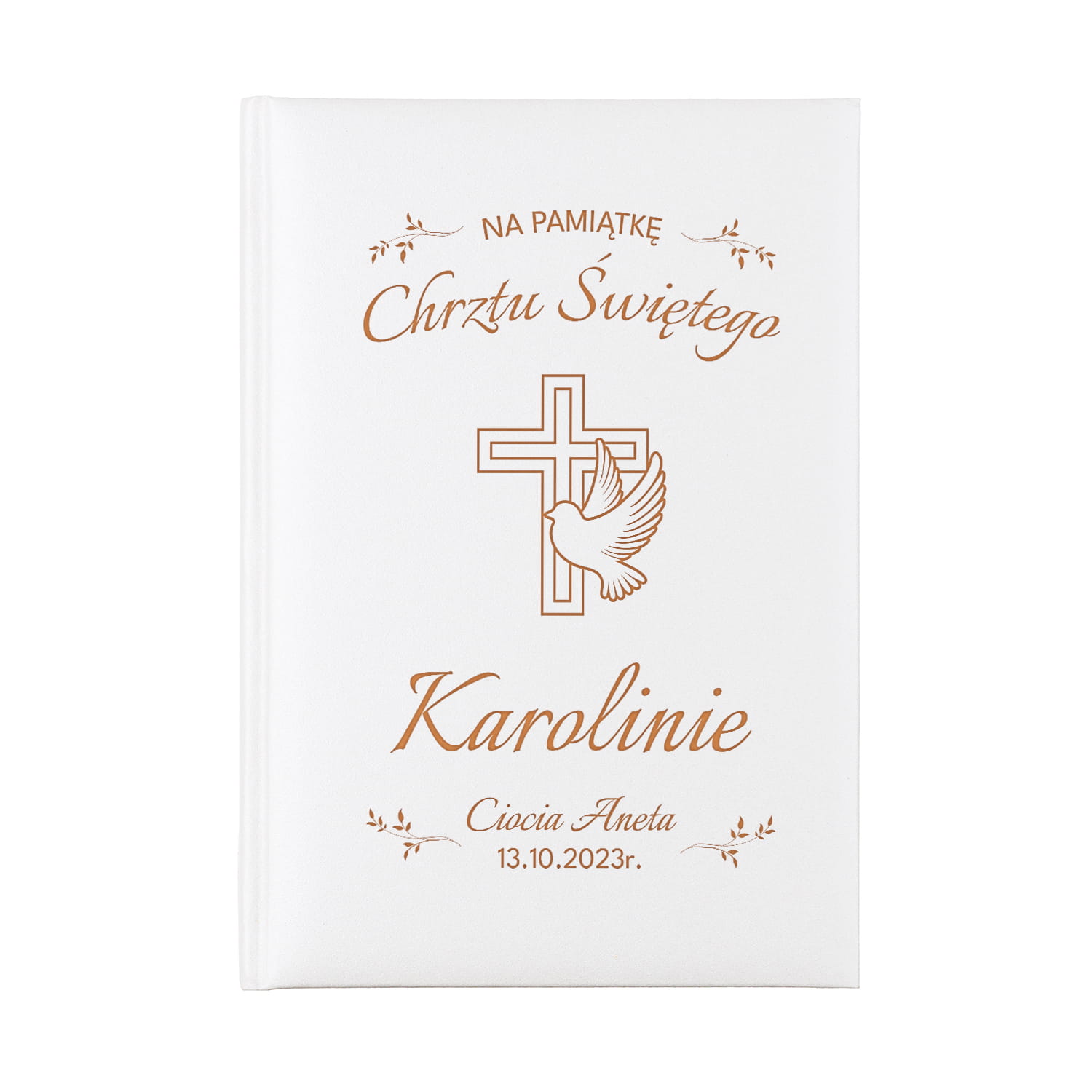 Biblia Prezent na Chrzest Święty - Pamiątka Na Chrzciny - Krzyżyk Z Gołąbkiem