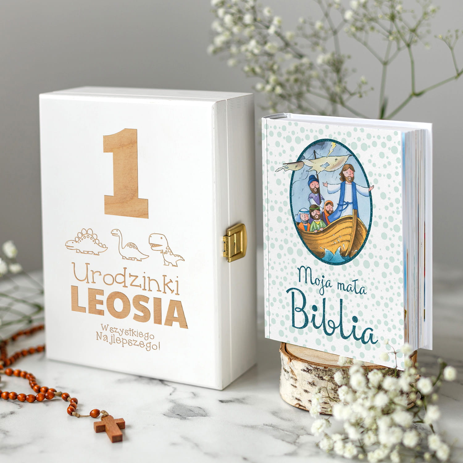 Biblia w Pudełku Prezent na Pierwsze Urodziny - Prezent na Roczek - Biblia dla Dzieci - Biała