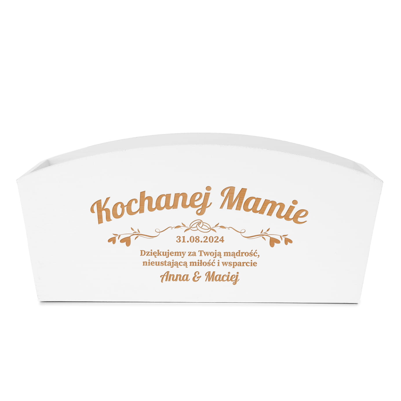 ❇️ Wyjątkowy grawer jest ozdobą skrzynki i pięknie odznacza się na białym drewnie.