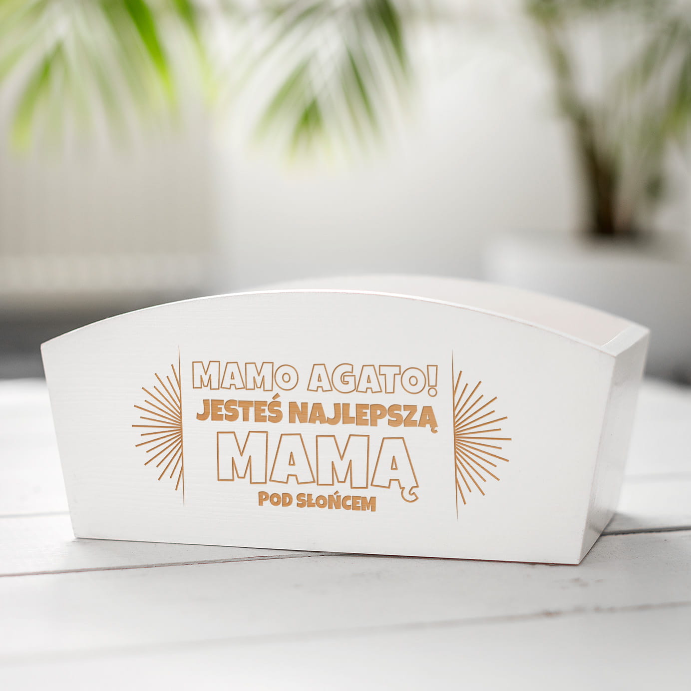 ❇️ Wyjątkowy grawer jest ozdobą skrzynki i pięknie odznacza się na białym drewnie.