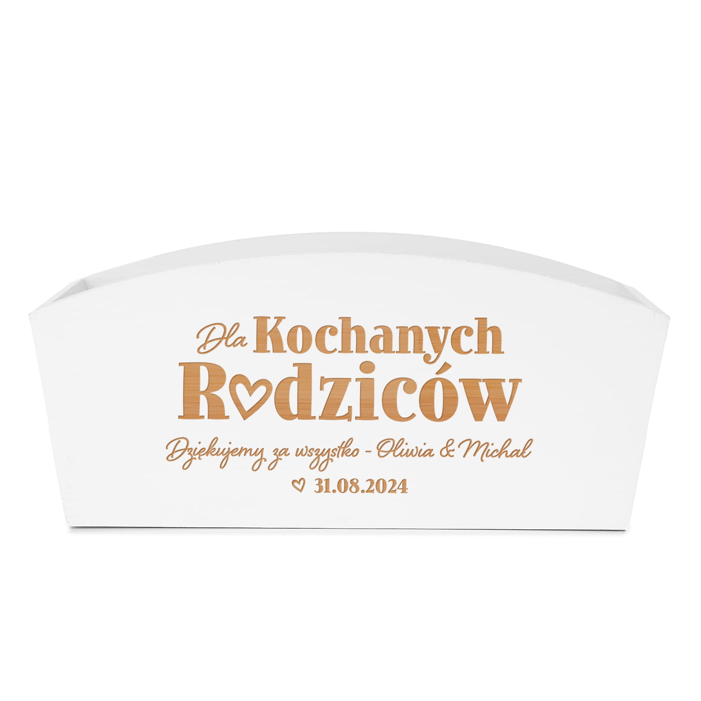 ❇️ Wyjątkowy grawer jest ozdobą skrzynki i pięknie odznacza się na białym drewnie.