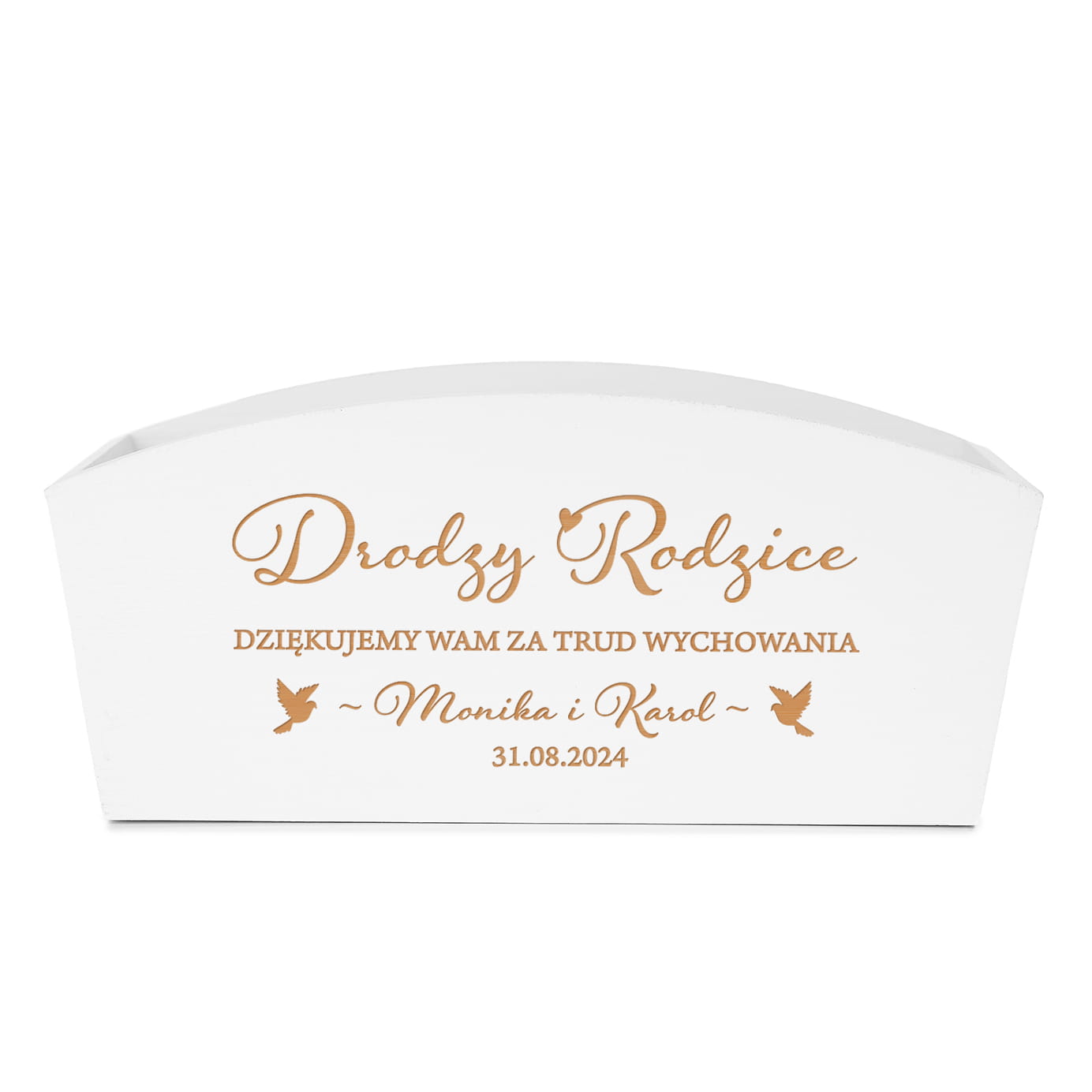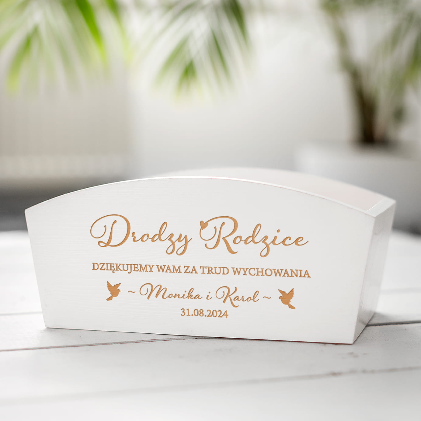 ❇️ Wyjątkowy grawer jest ozdobą skrzynki i pięknie odznacza się na białym drewnie.
