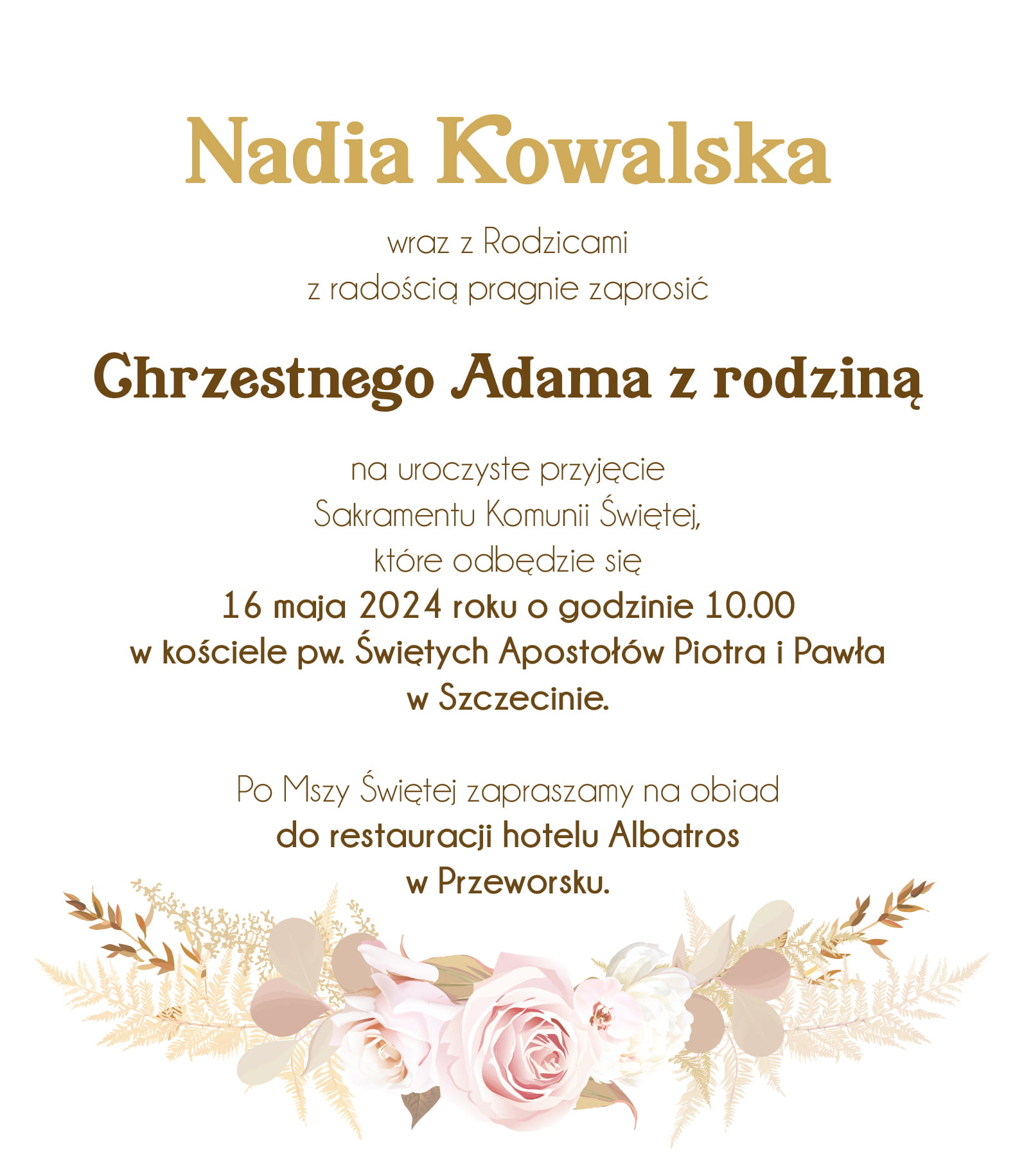 ZAPROSZENIE NA KOMUNIE KOMUNIJNE DLA RODZICÓW CHRZESTNYCH CHRZESTNEJ