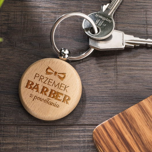 Drewniany Brelok do Kluczy z Grawerem - Prezent dla Barbera - Barber z Powołania