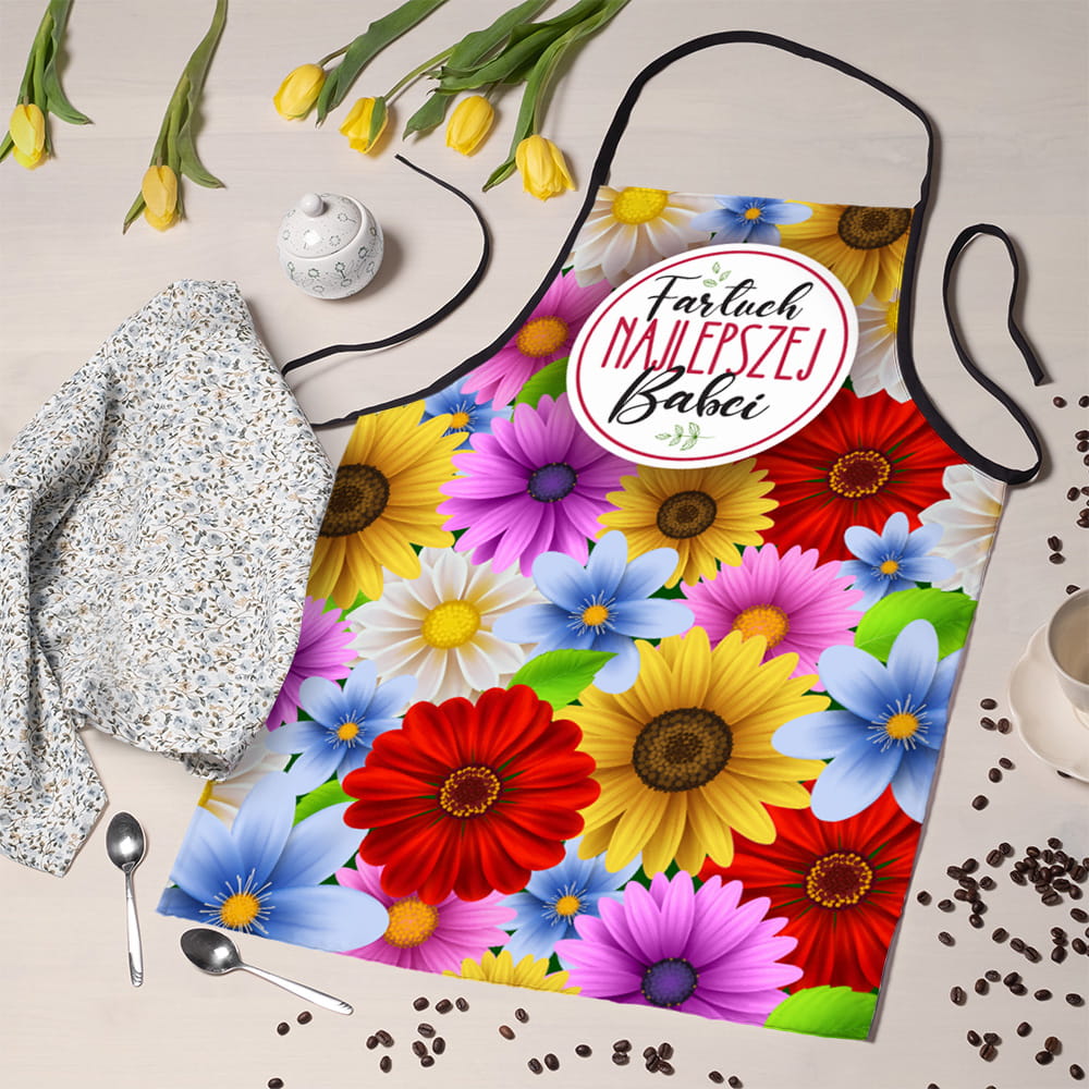 Fartuch Kuchenny - Prezent dla Babci - Kolorowe Kwiaty