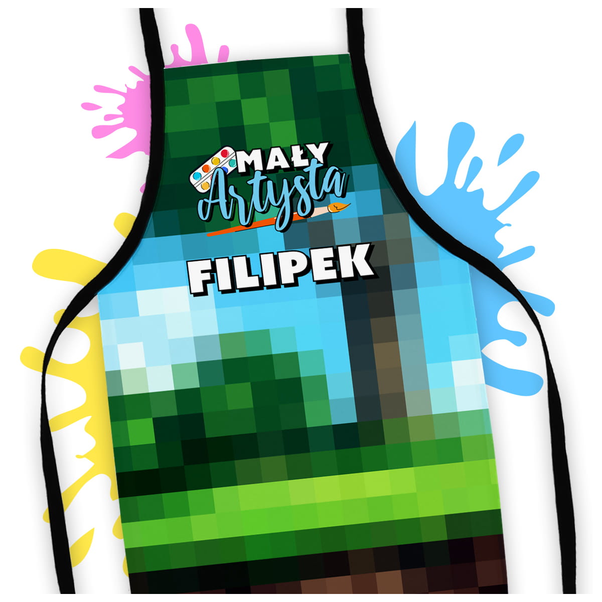 Fartuszek do Malowania z Imieniem do Przedszkola - Fartuszek do Malowania dla Dzieci - Prezent do Przedszkola - Mały Artysta Piksele