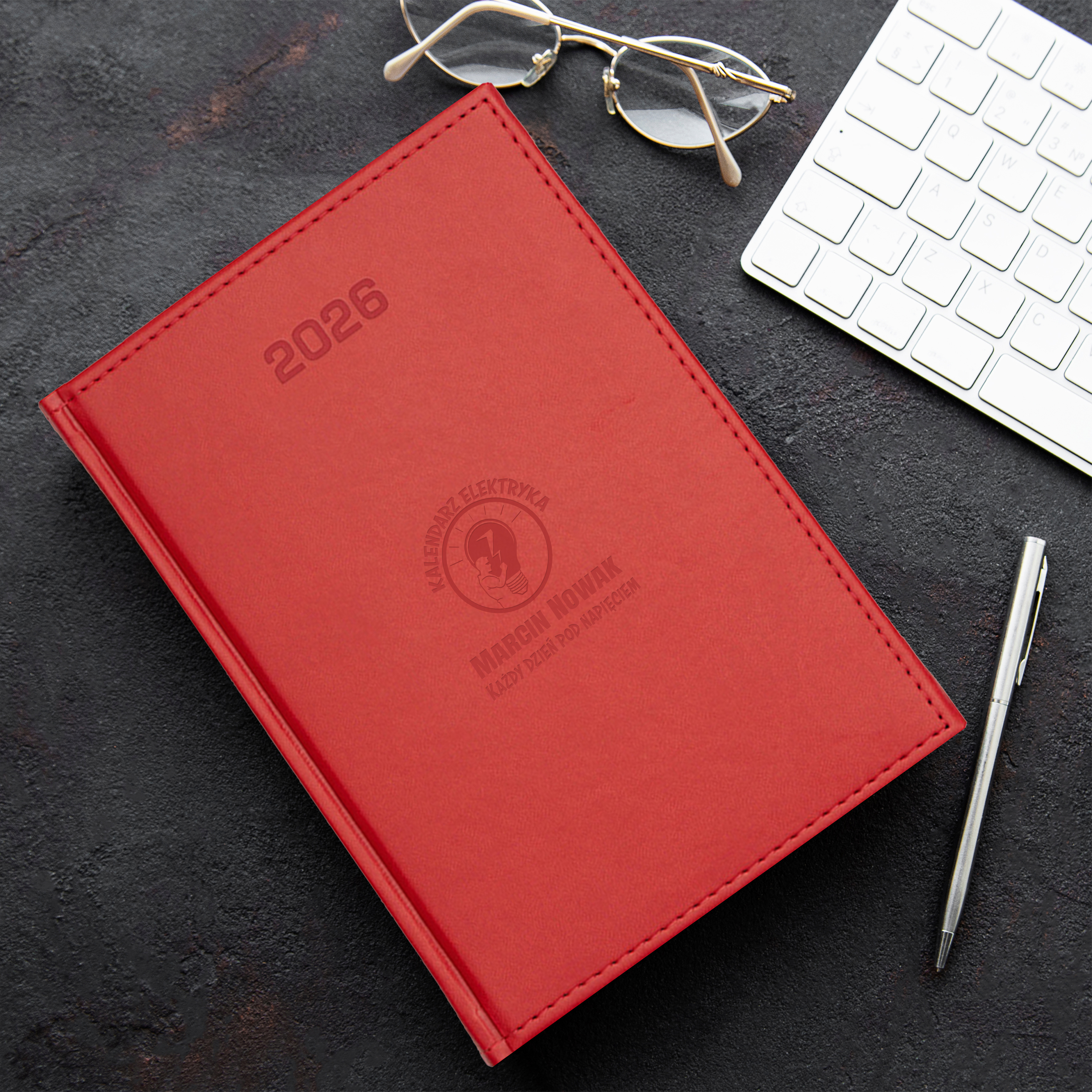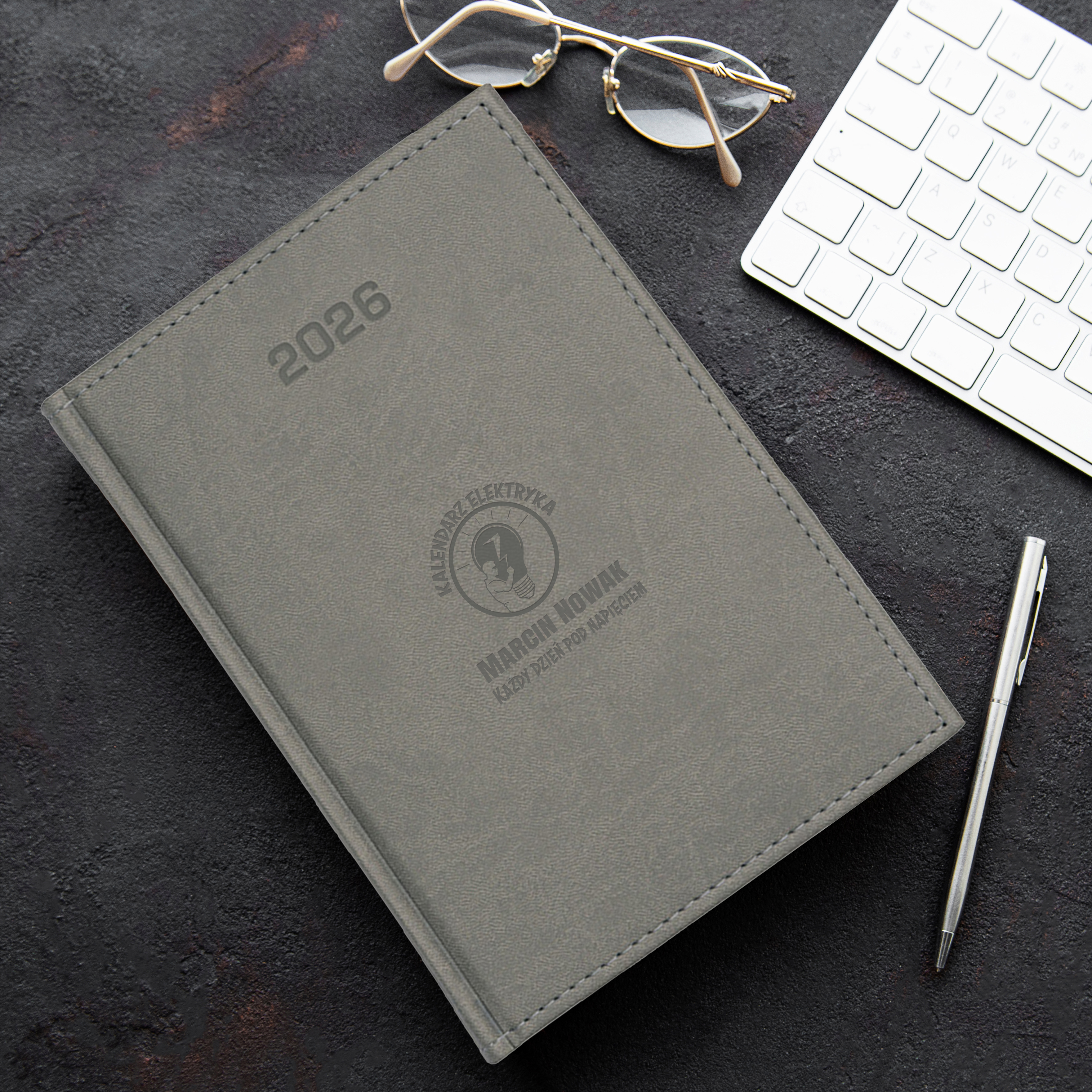ELEGANCKI KALENDARZ DZIENNY Z GRAWEREM - IDEALNY PREZENT DLA ELEKTRYKA