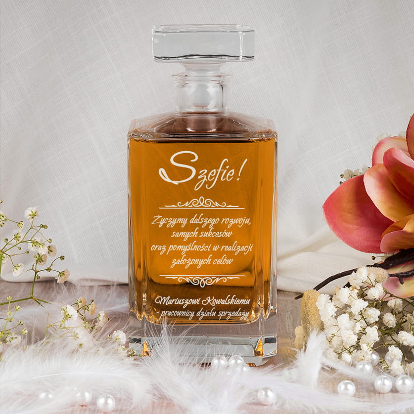 Personalizowana karafka na whisky z grawerem i imieniem to świetny prezent dla szefa w ramach podziękowań, z okazji urodzin czy imienin!