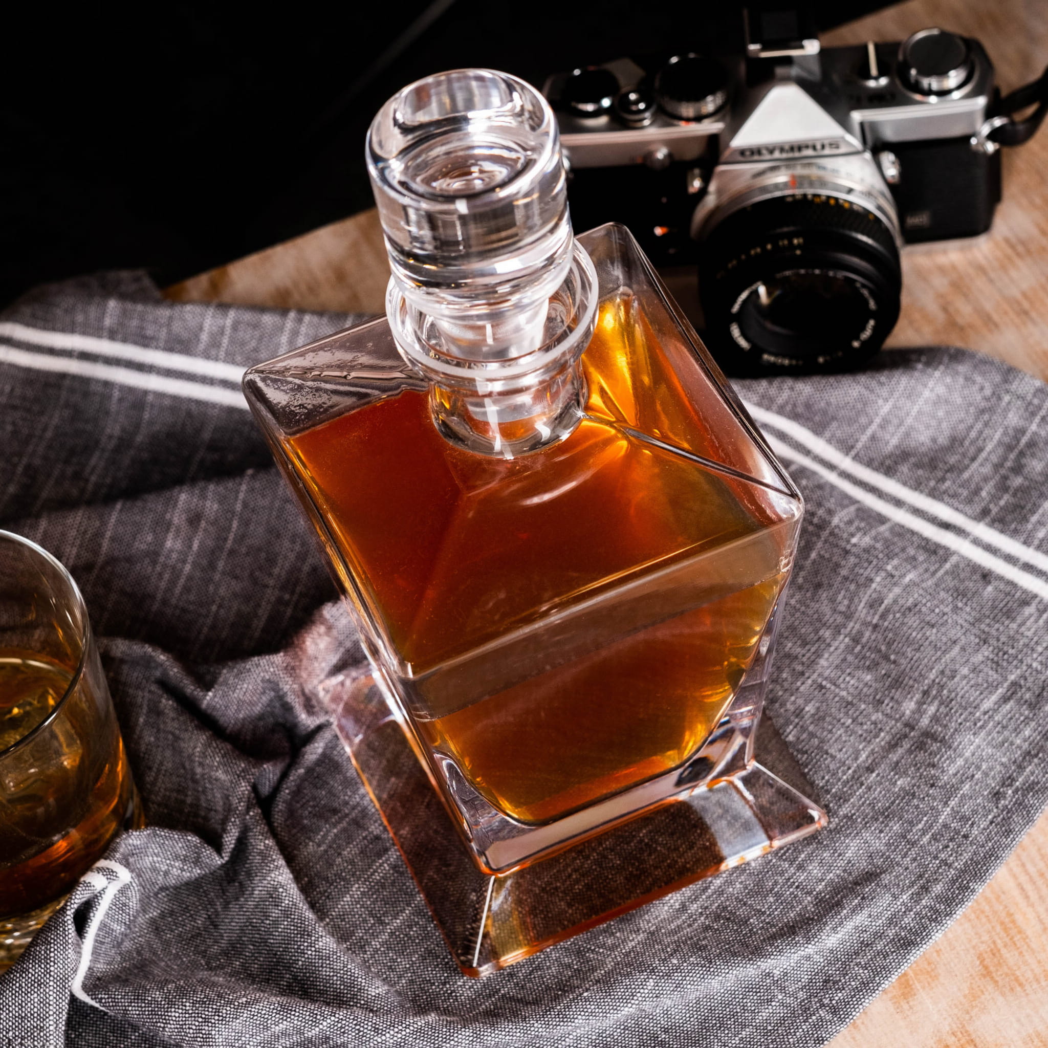 Piękna łamana karafka z grawerem to wspaniały prezent na święta dla każdego konesera wysokoprocentowych trunków.