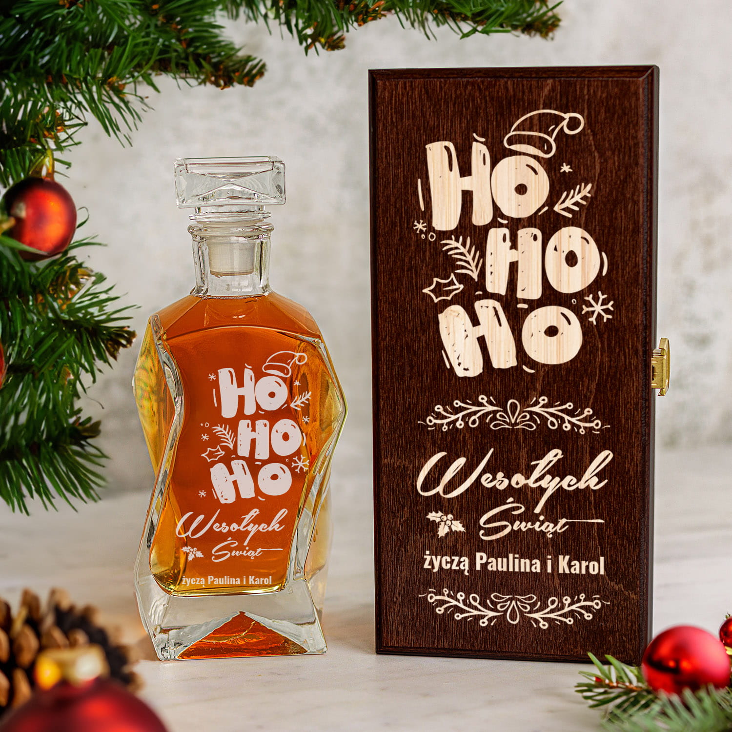 Karafka na Whisky w Skrzynce z Grawerem - Prezent na Święta - Ho Ho Ho - Łamana