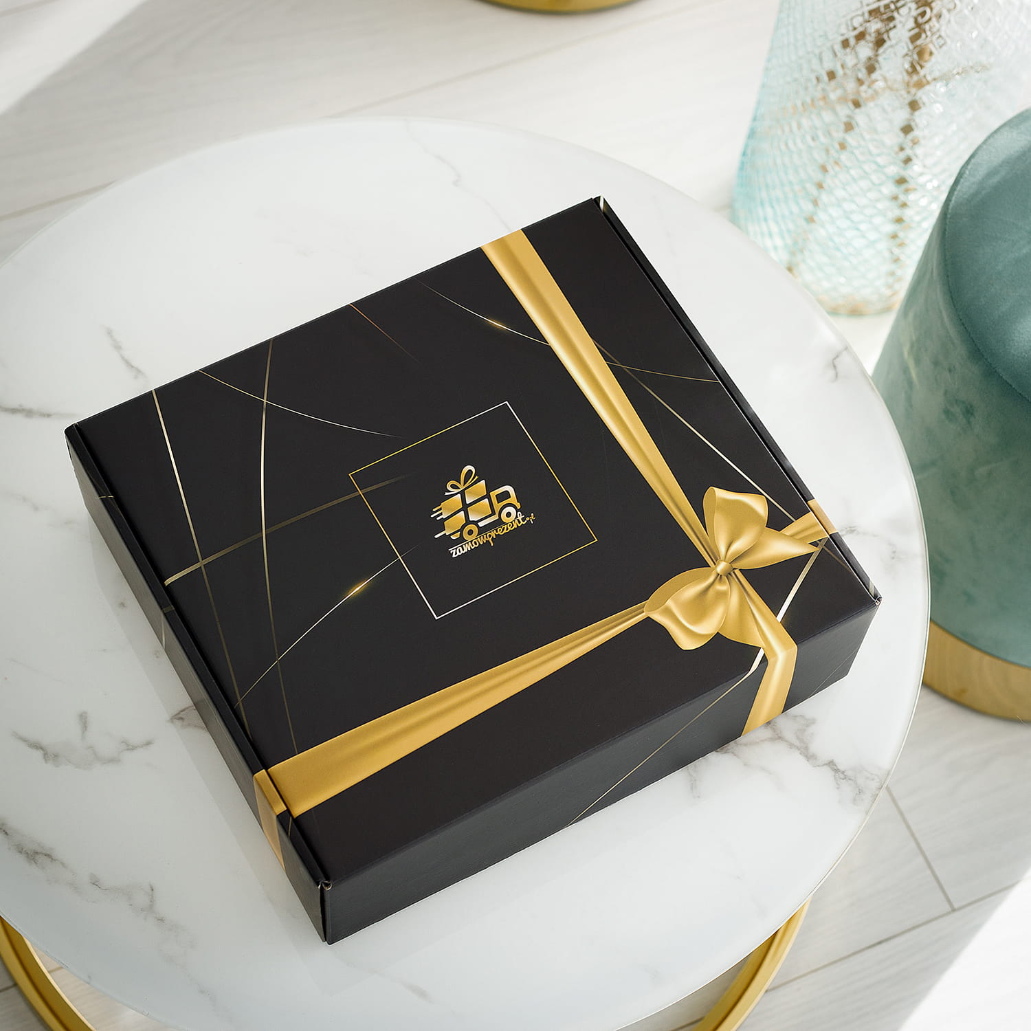 Całość otrzymasz elegancko zapakowane w kartonowe pudełko fasonowe wykonane z kartonu z eleganckim nadrukiem w macie. Wewnątrz pudełka znajduje się kartonowa wkładka z miejscami dedykowanymi wszystkim elementom zestawu.