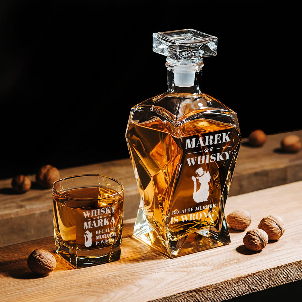 Karafka z Grawerem i Szklanka Do Whisky - Prezent dla Miłośnika Kotów - Murder is Wrong - Łamana