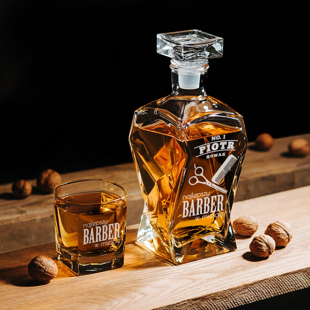 Karafka z Grawerem i Szklanka Do Whisky - Prezent dla Barbera