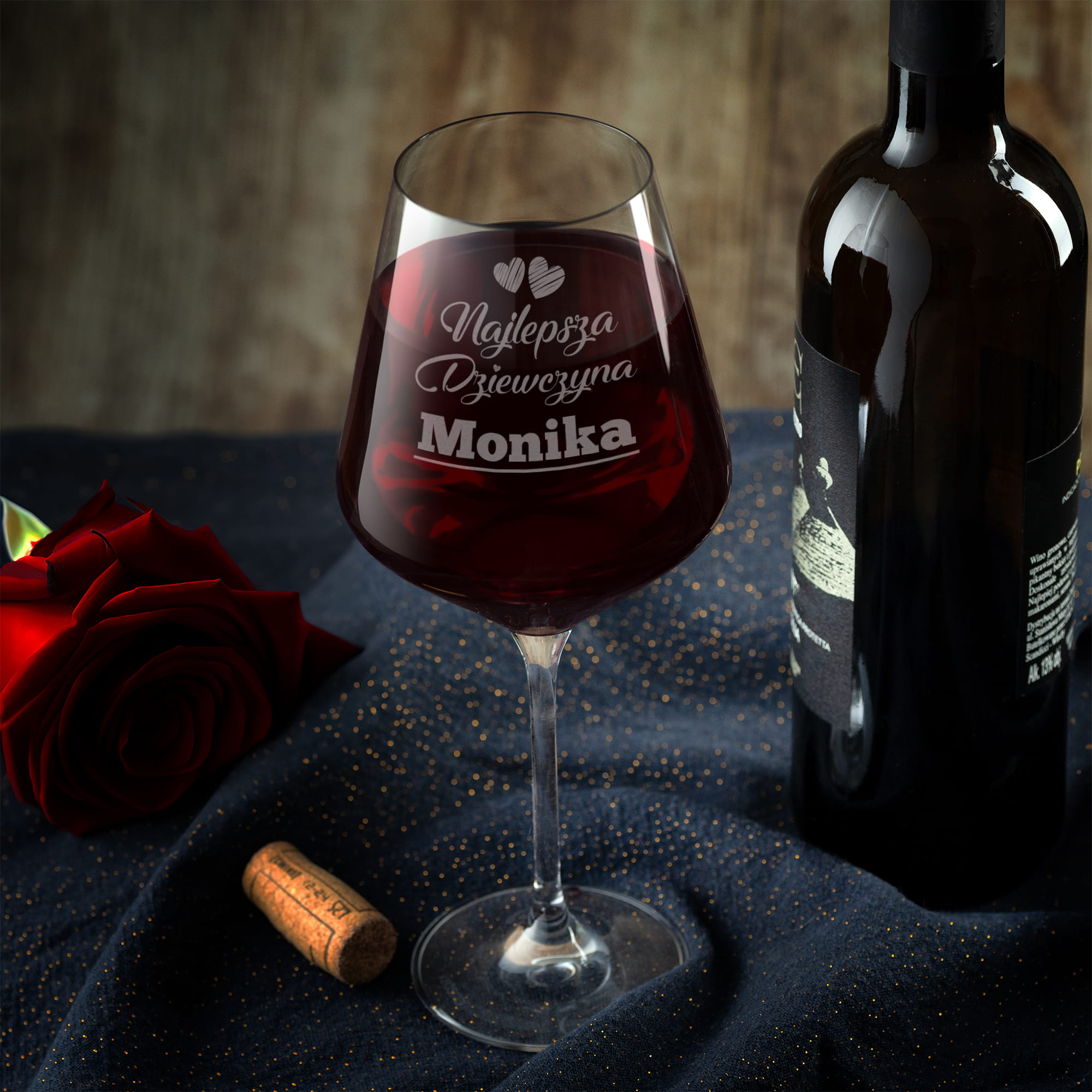 KIELISZEK XXL DO WINA Z GRAWEREM DLA DZIEWCZYNY - DUŻY KIELISZEK Z IMIENIEM NA DZIEŃ KOBIET