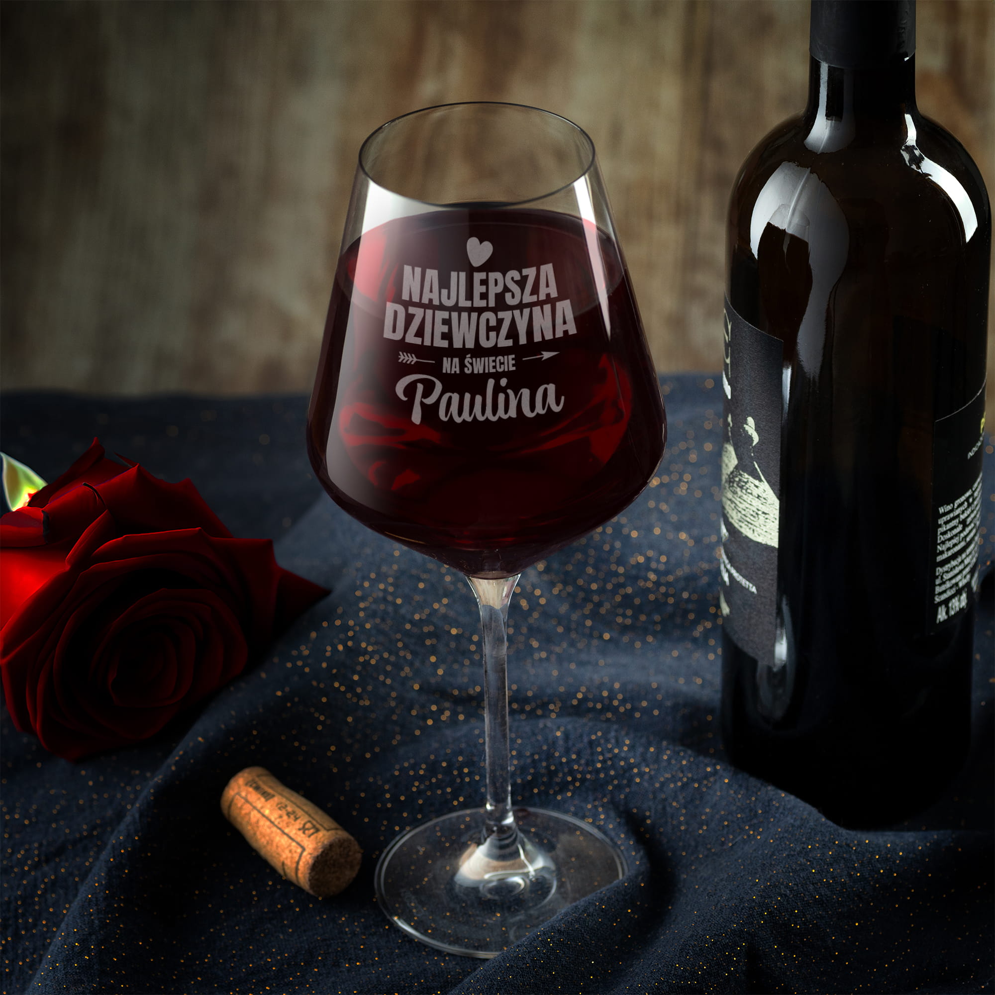 KIELISZEK XXL DO WINA Z GRAWEREM DLA DZIEWCZYNY - DUŻY KIELISZEK Z IMIENIEM NA DZIEŃ KOBIET
