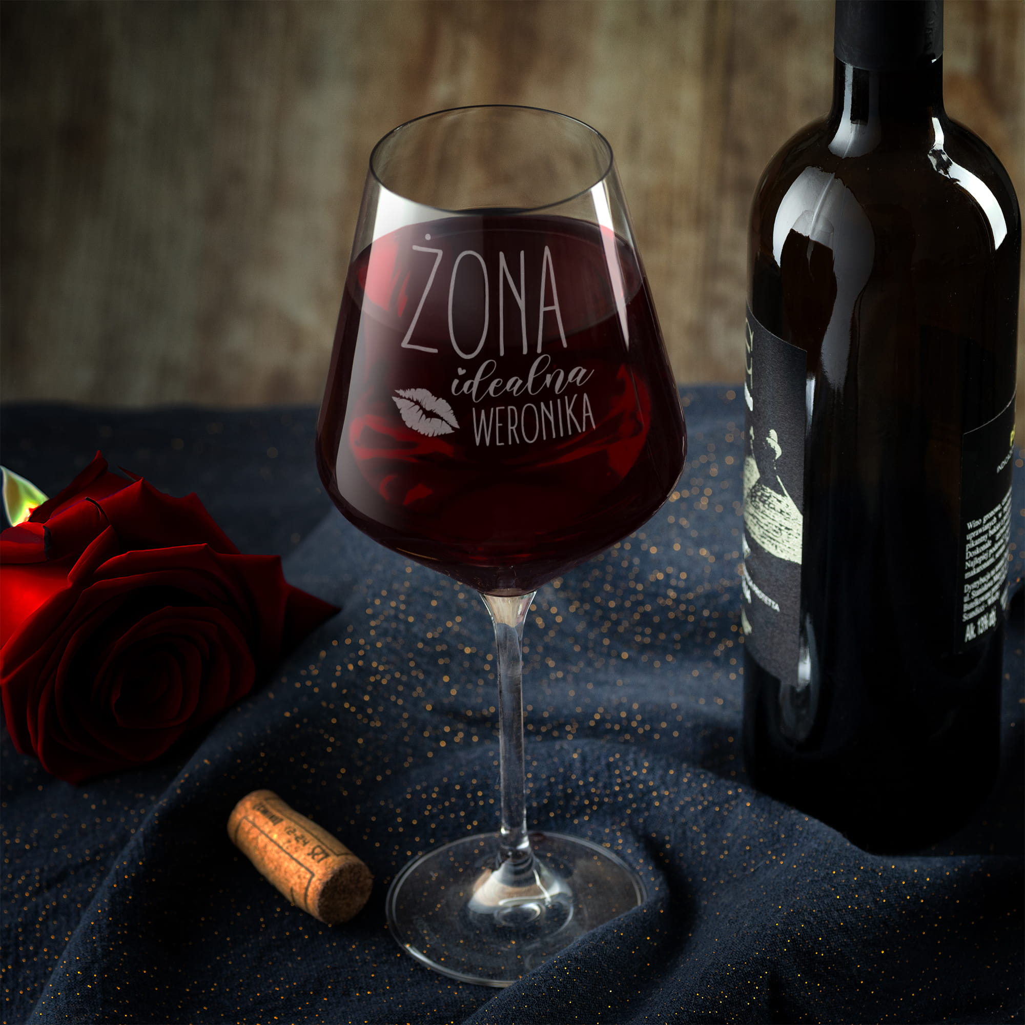 Kieliszek XXL do Wina z Grawerem - Prezent Na Dzień Kobiet dla Żony - Duży Kieliszek Do Wina - Żona Idealna Usta