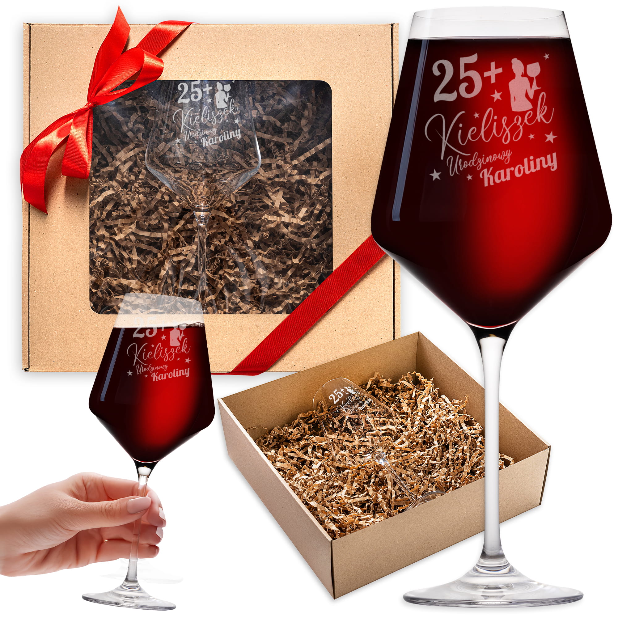 KIELISZEK XXL DO WINA Z GRAWEREM PREZENT NA URODZINY - KIELISZEK URODZINOWY - PREZENT URODZINOWY - DUŻY KIELISZEK Z IMIENIEM