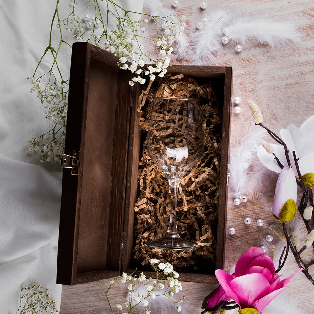 Elegancki kieliszek do wina w skrzynce z grawerem będzie idealnym prezentem dla dentystki w ramach podziękowania. Jeśli Twoja Pani Stomatolog na to zasługuje, podziękuj jej w wyjątkowy sposób wręczając elegancki prezent w formie kieliszka zamkniętego w drewnianej skrzynce z grawerem.
