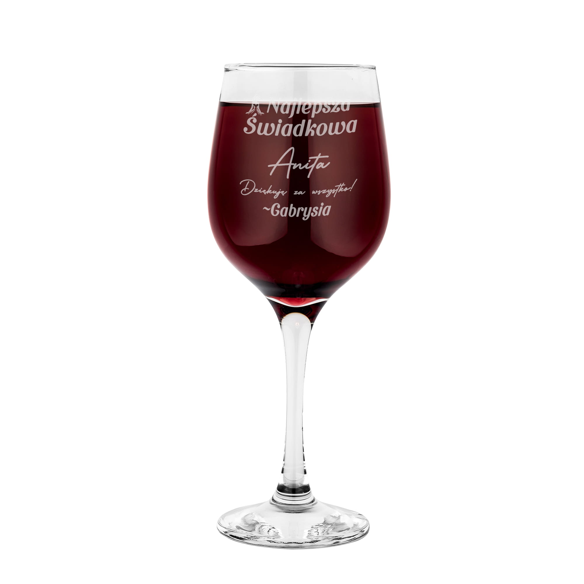 KIELISZEK DO WINA Z GRAWEREM - PODZIĘKOWANIE DLA ŚWIADKOWEJ - ZESTAW PREZENTOWY BOX DLA ŚWIADKOWEJ - PREZENT DLA ŚWIADKOWEJ -PODZIĘKOWANIE ZA ŚWIADKOWANIE