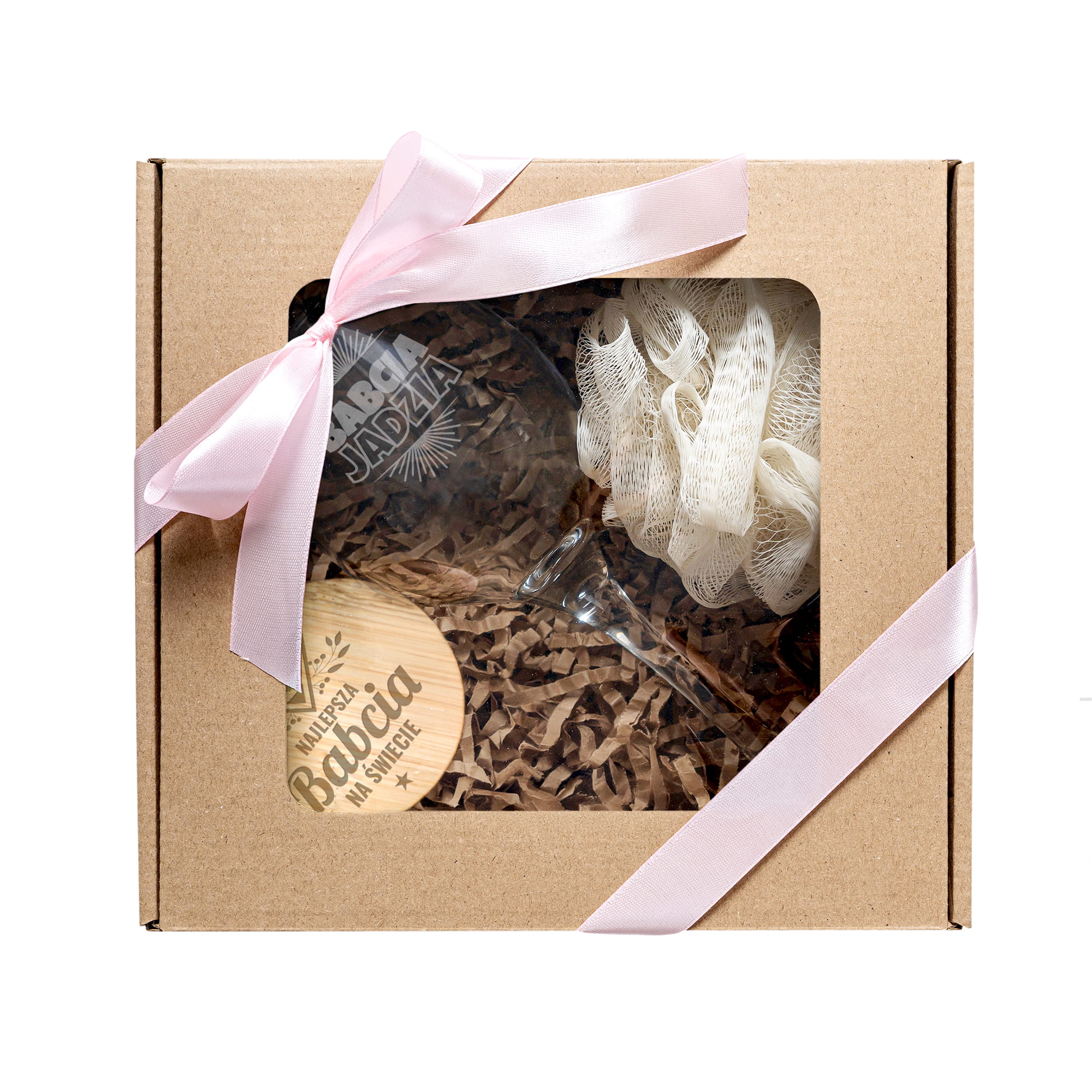 PREZENT NA DZIEŃ BABCI - EKSLUZYWNY ZESTAW PREZENTOWY Z KIELISZKIEM NA WINO