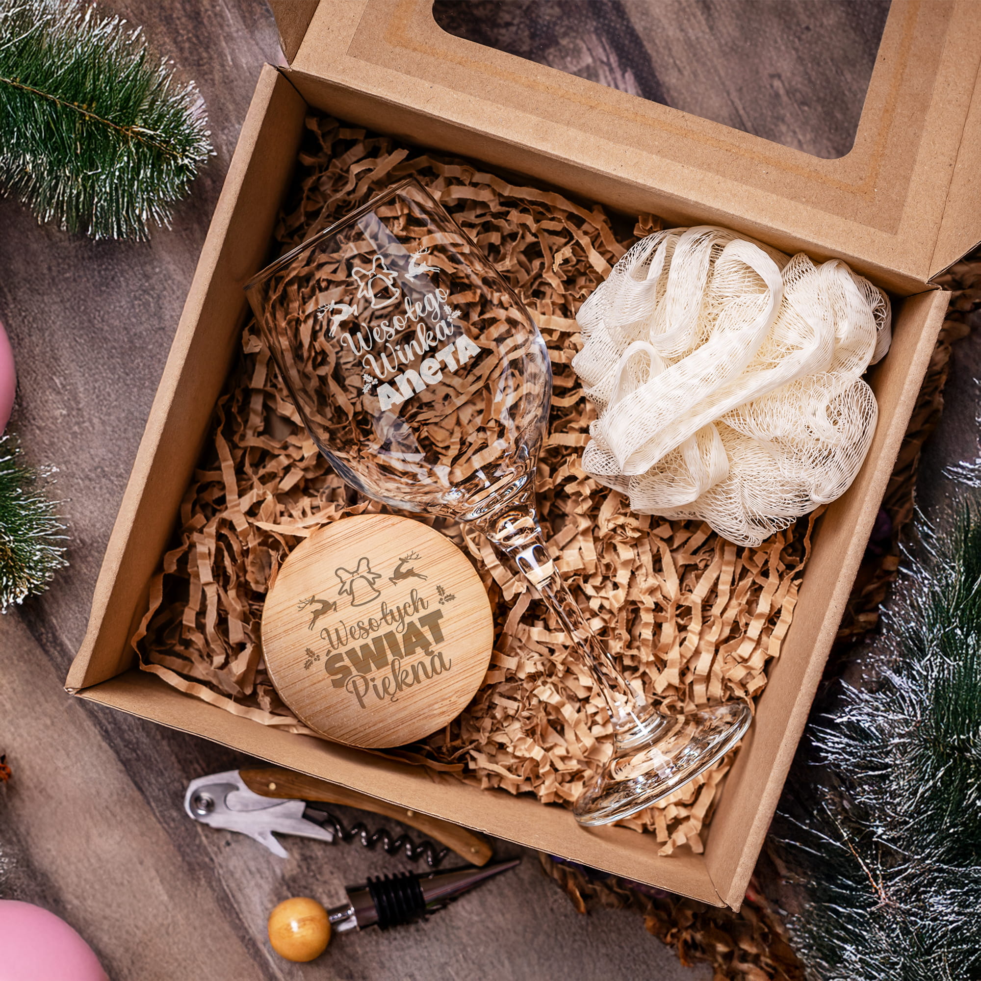 KIELISZEK DO WINA Z GRAWEREM - PREZENT NA BOŻE NARODZENIE - ŚWIĄTECZNY ZESTAW PREZENTOWY - PREZENT NA GWIAZDKĘ
