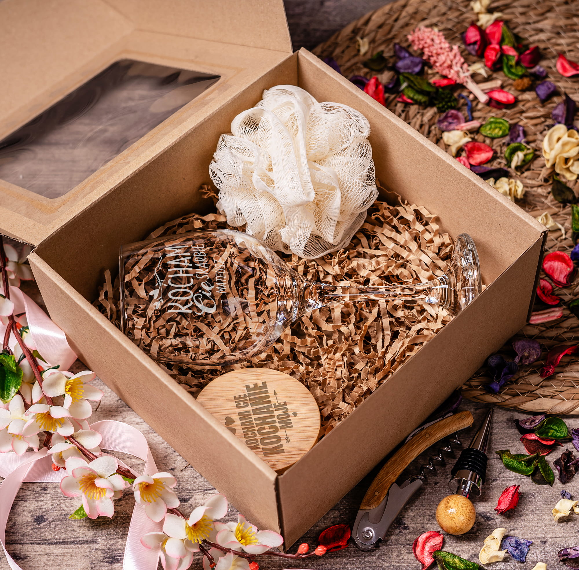 KIELISZEK DO WINA Z GRAWEREM - PREZENT NA WALENTYNKI - ZESTAW PREZENTOWY NA WALENTYNKI DLA DZIEWCZYNY ŻONY