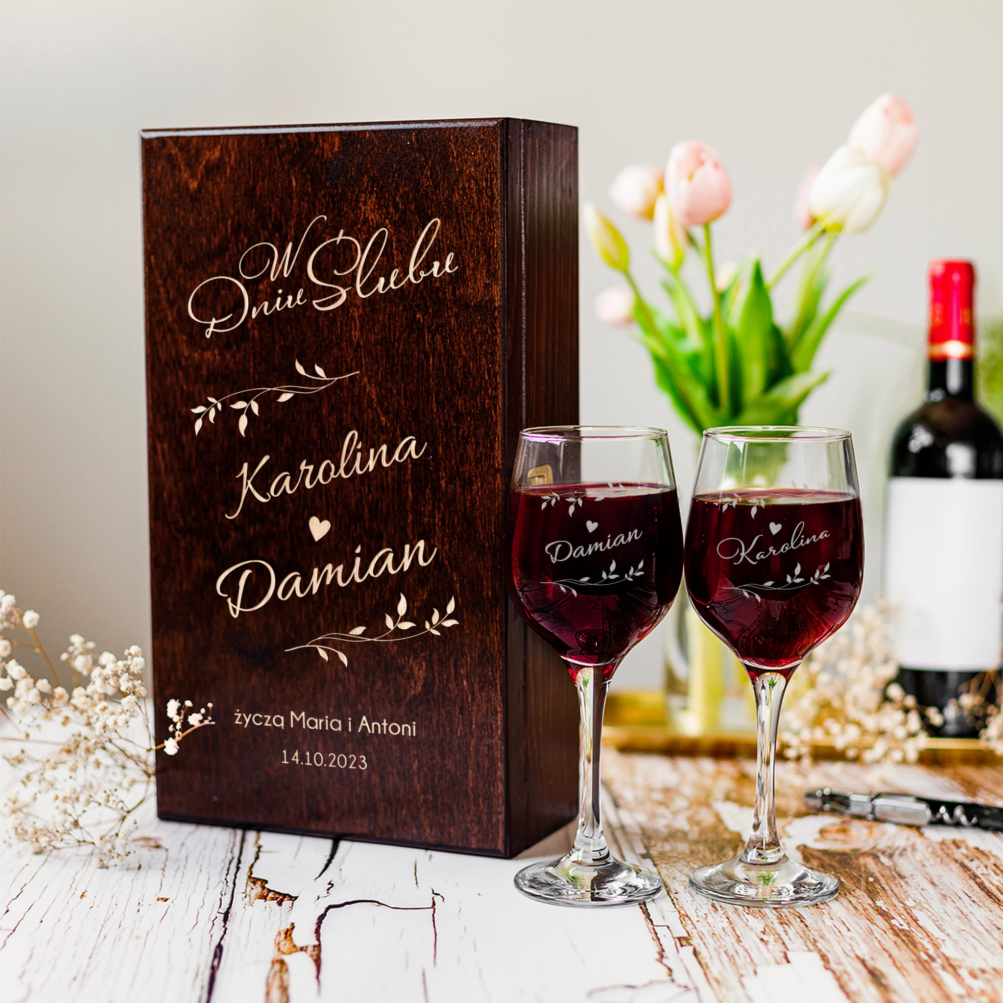 Kieliszki do Wina w Skrzynce z Grawerem - Prezent na Ślub dla Pary Młodej - W Dniu Ślubu - Podwójna