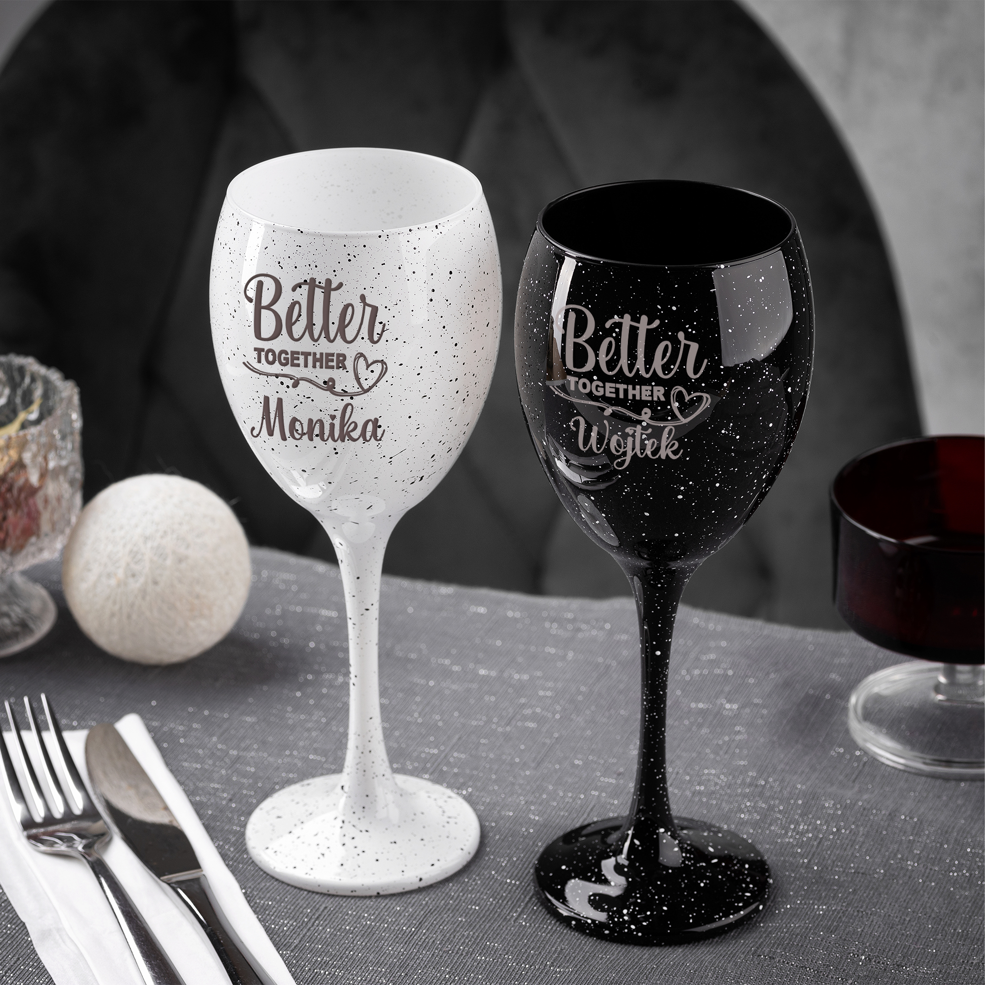 Kieliszki do Wina z Grawerem - Prezent dla Par - Kieliszek Biały i Czarny - Zestaw Prezentowy dla Pary - Prezent na Walentynki - Better Togheter