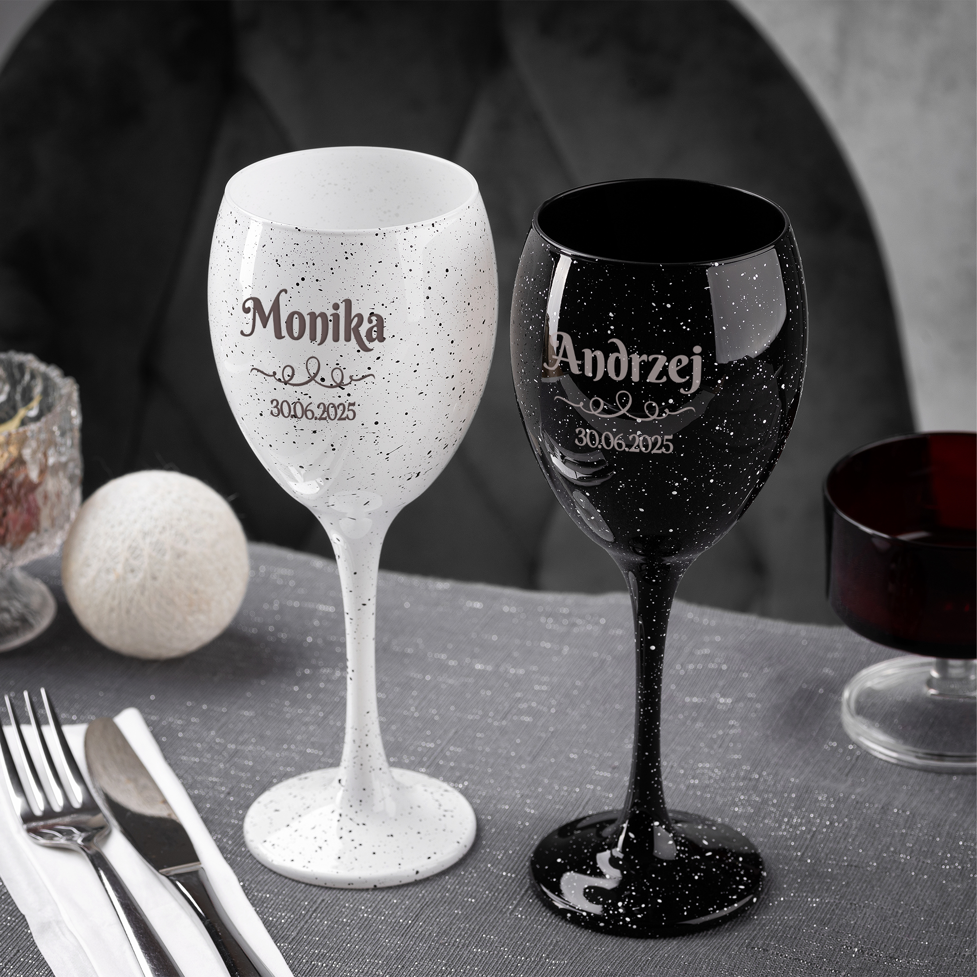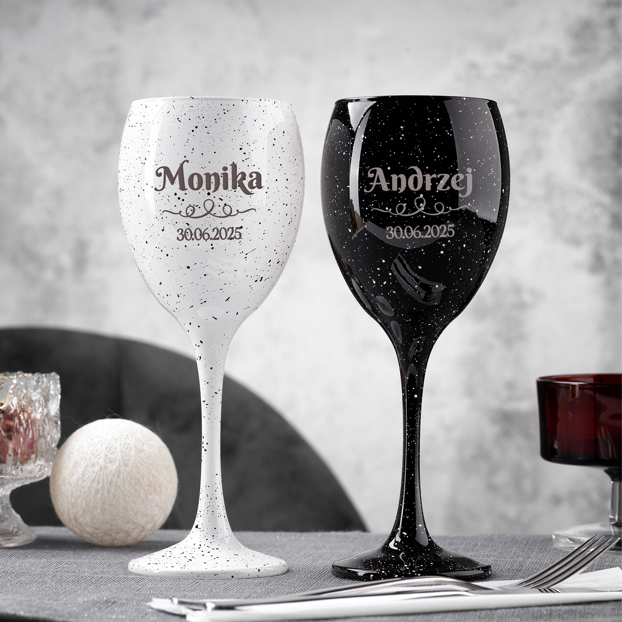 KIELISZKI DO WINA Z PERSONALIZOWANYM GRAWEREM W NOWOCZESNYM WYDANIU