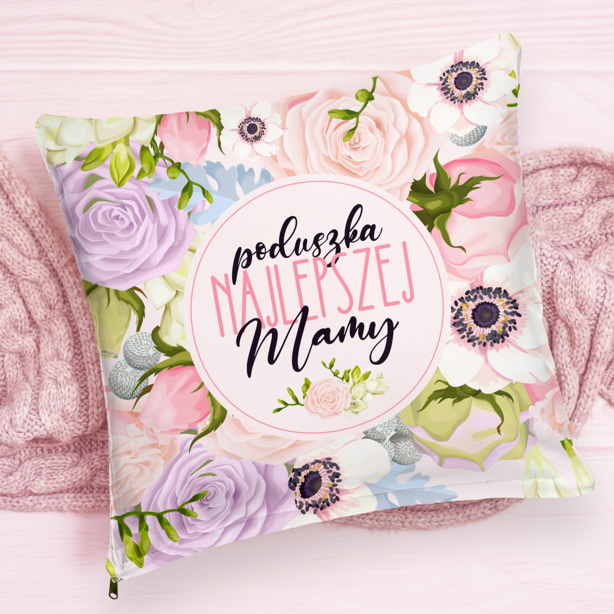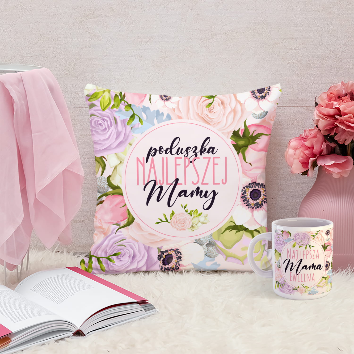 Kubek, Podkładka i Poszewka z Nadrukiem dla Mamy - Prezent na Dzień Matki - Zestaw Prezentowy dla Mamy - Pastelowe Róże