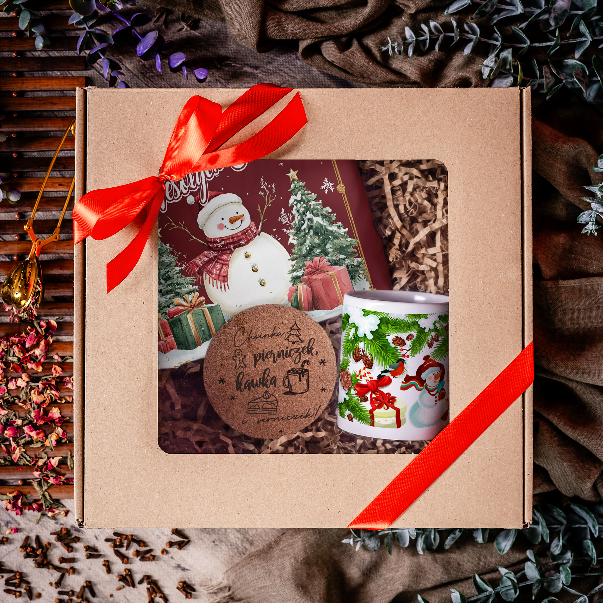 Kubek, Podkładka i Poszewka z Nadrukiem na Mikołaja - Prezent na Święta, Gwiazdkę - Zestaw Prezentowy Na Mikołaja - Bałwanek