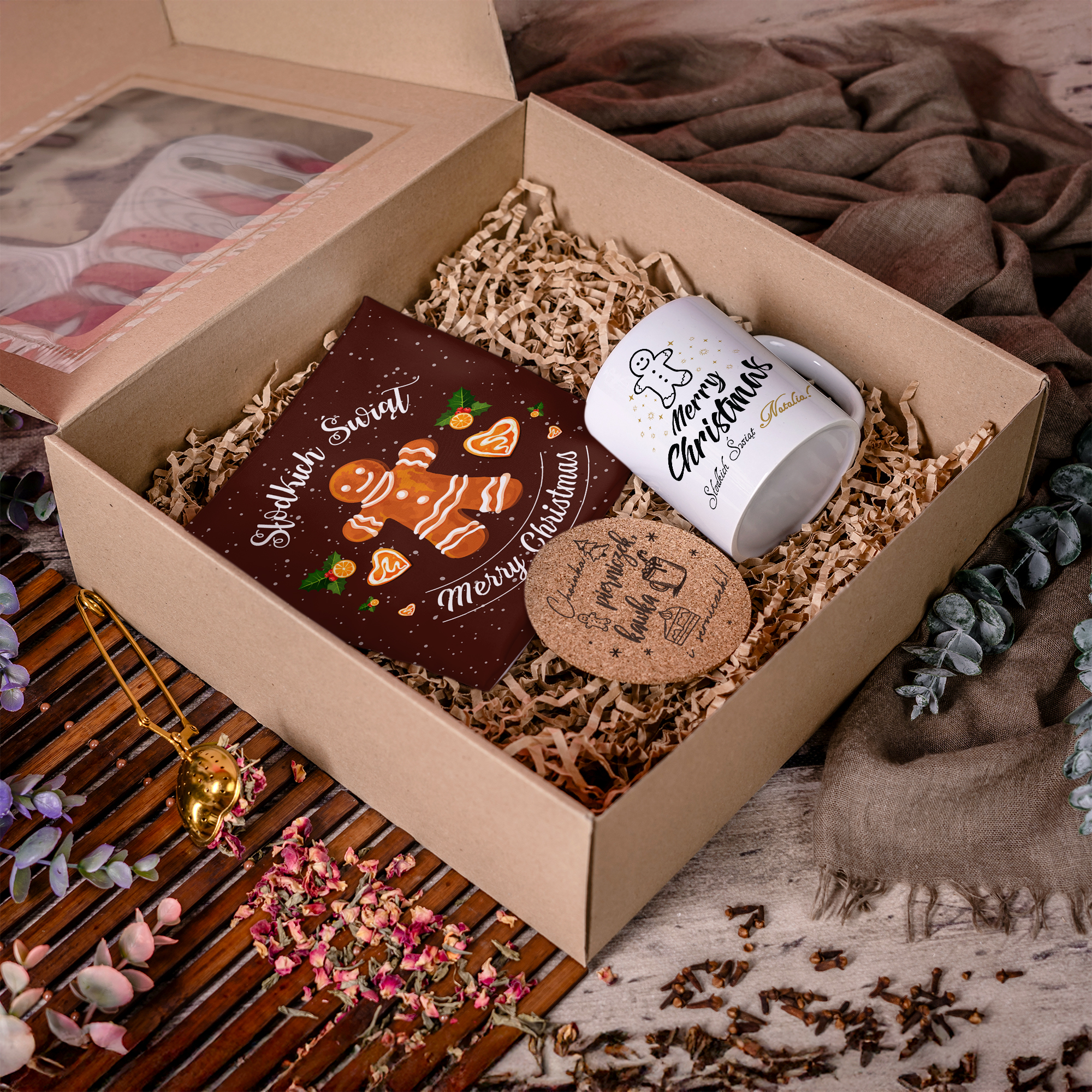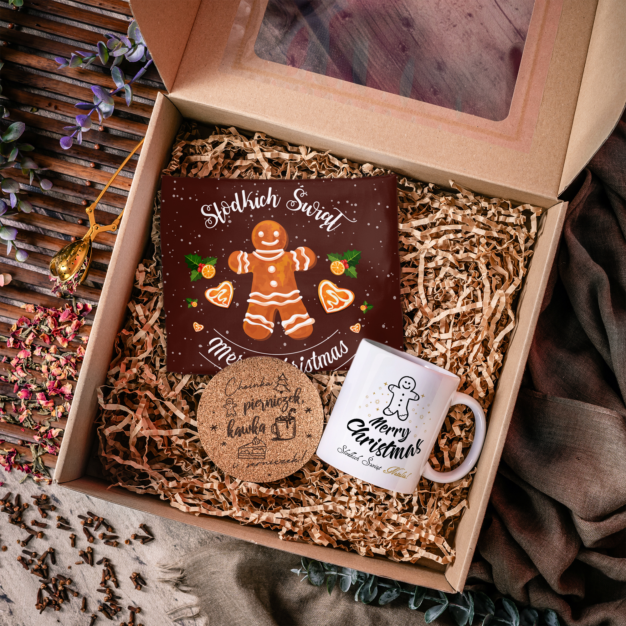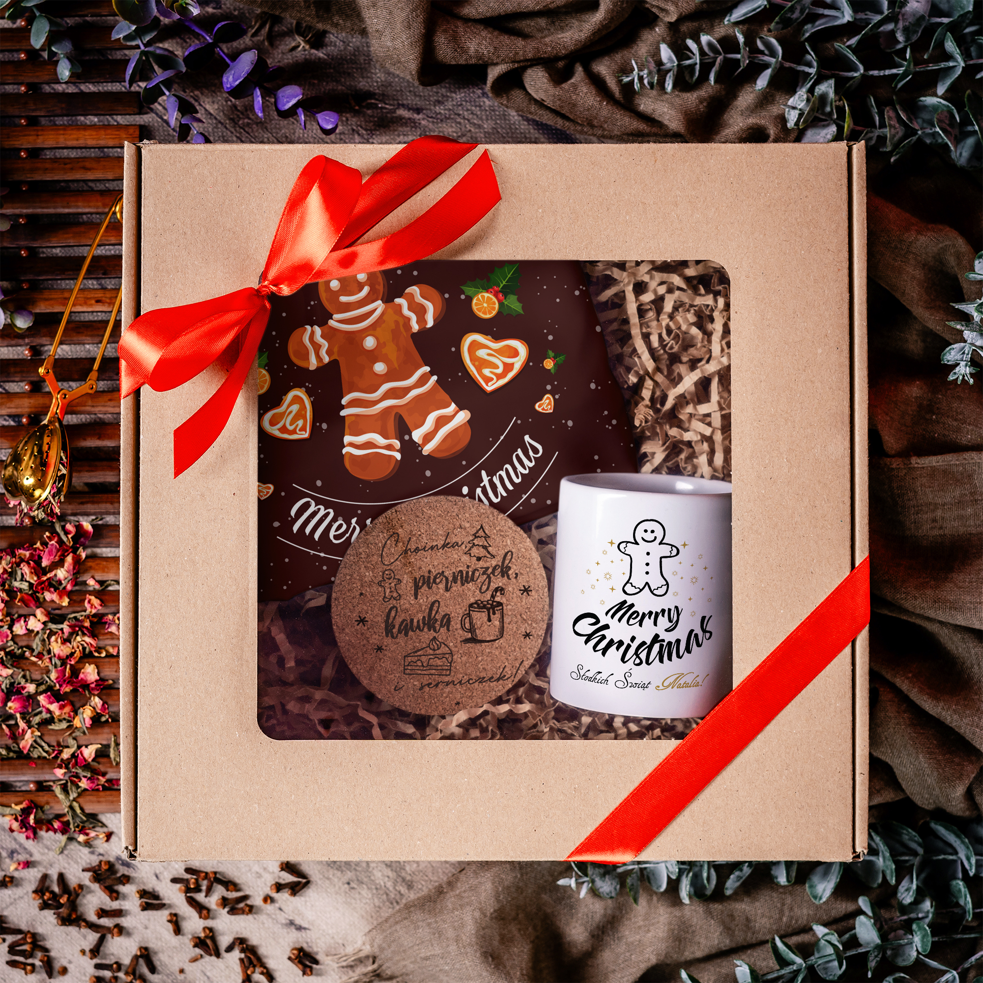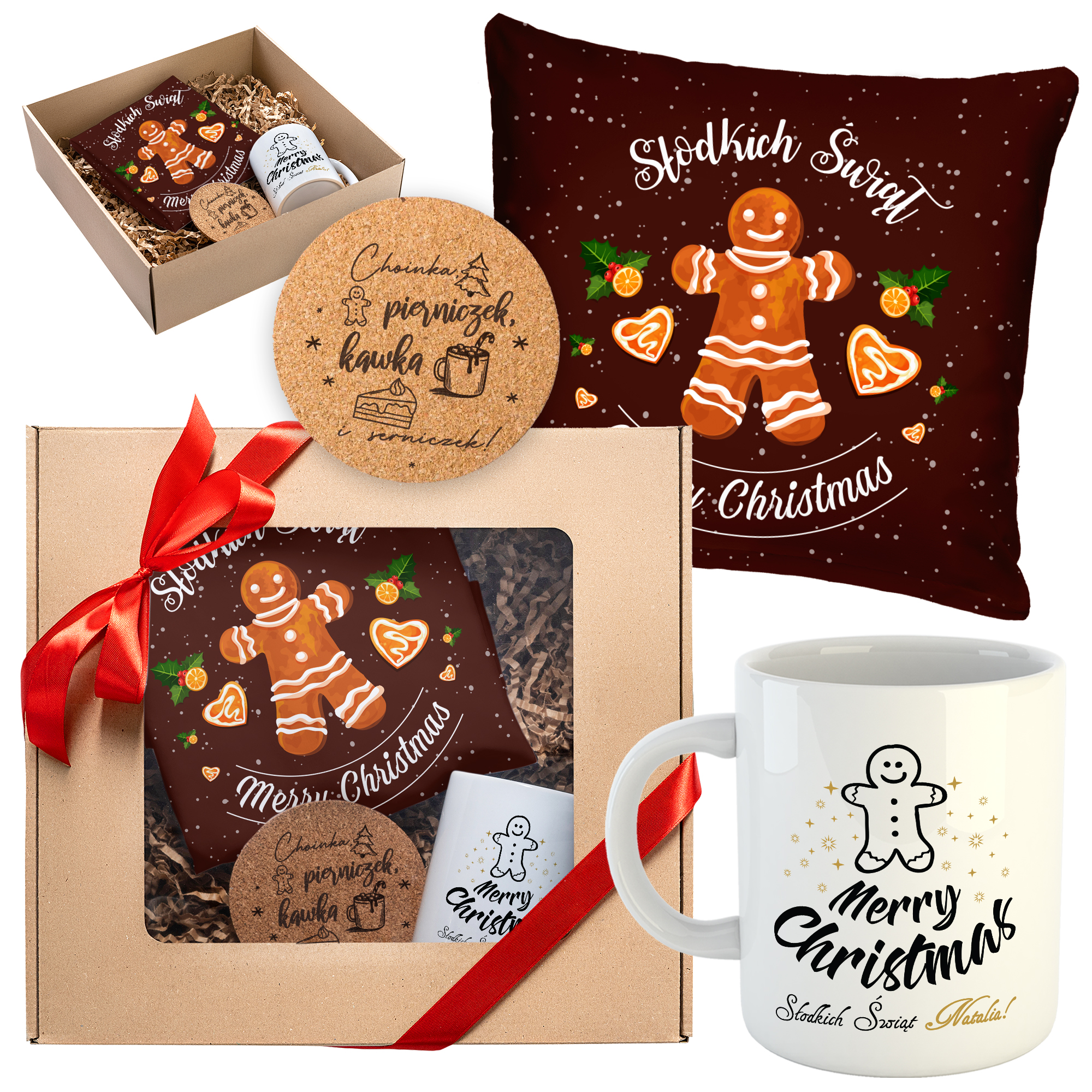 Kubek, Podkładka i Poszewka z Nadrukiem na Mikołaja - Prezent na Święta, Gwiazdkę - Zestaw Prezentowy Na Mikołaja - Pierniczki